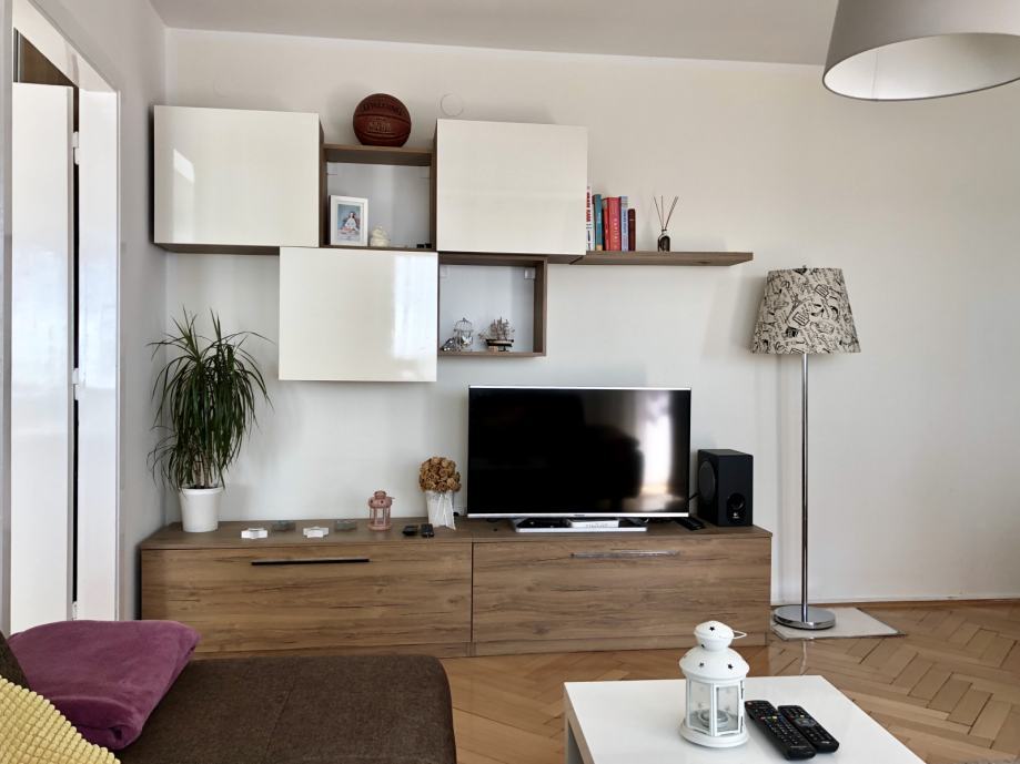 A two-bedroom apartment on the fourth floor of a residential building in Savski Gaj (Nehru Square), with a total area of 48 m². The apartment is south-facing and consists of an entrance hall, bathroom, living room with access to the balcony, balcony, kitchen, and bedroom. The apartment is fully furnished and ready to move in.