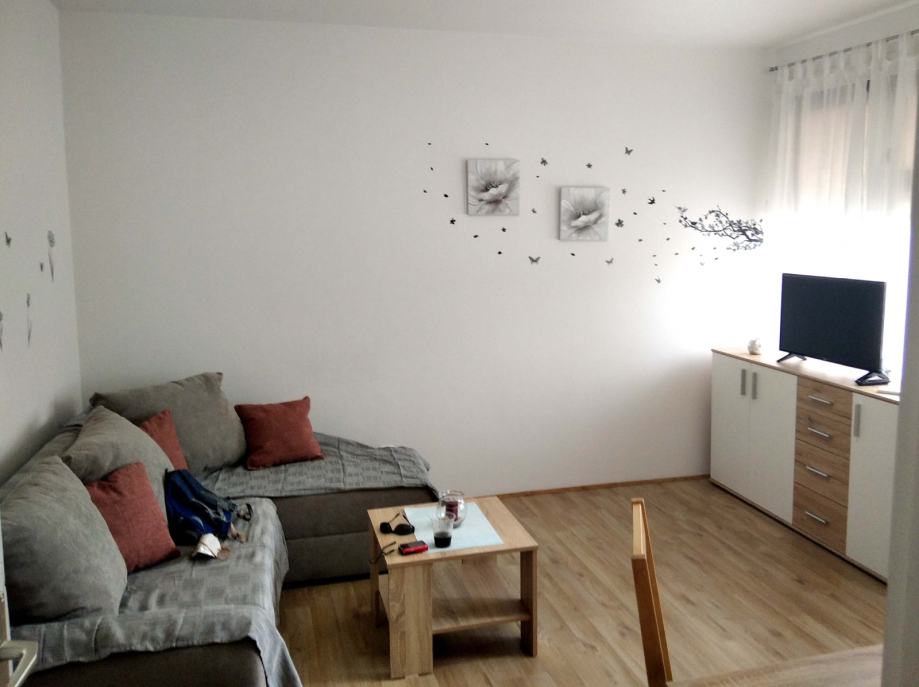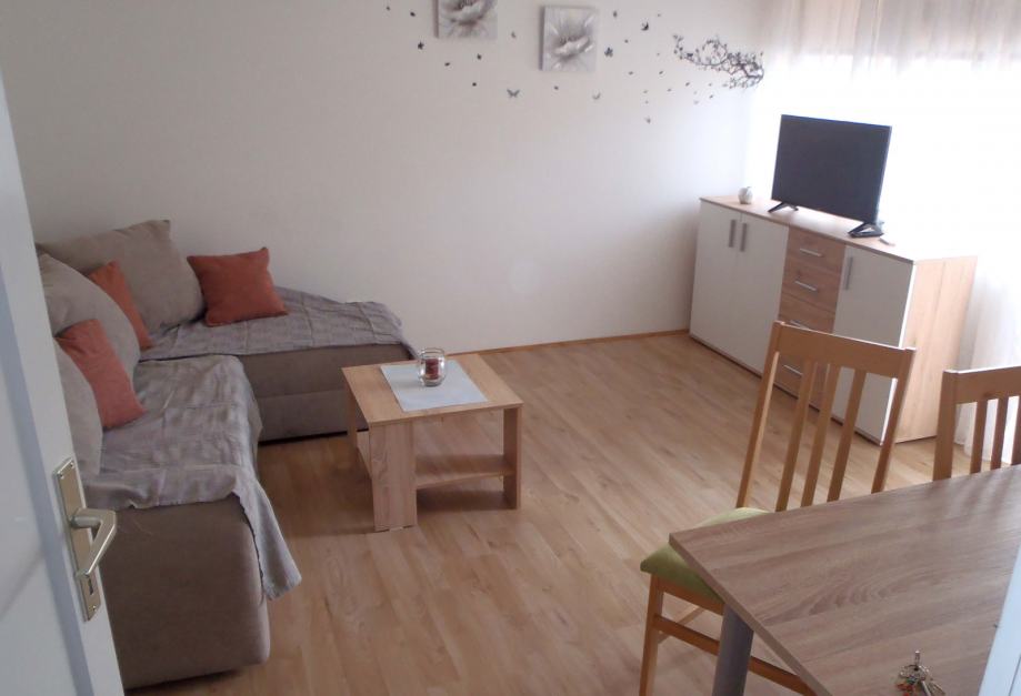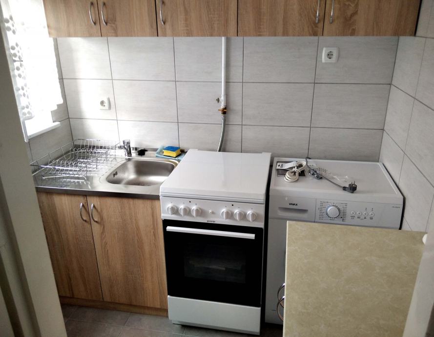 Stan je potpuno renoviran ,a namještaj je novi. Stan gleda u smjeru zapada. Idealan je za 2 osobe,a sastoji se od predsoblja, velikog dnevnog boravka, kuhinjom sa svim aparatima, kupaonicom ( tuš kabina ) i balkona.