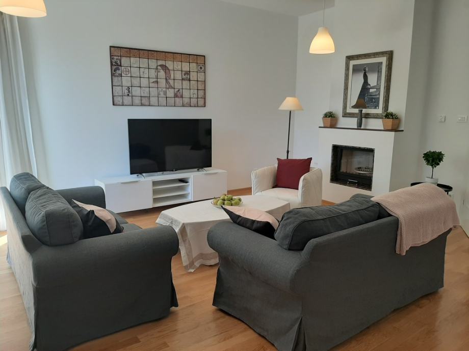 Klima, centralno plinsko grijanje, otvoreni kamin, 2min hoda do gradskog autobusa, 10min autom do centra grada.