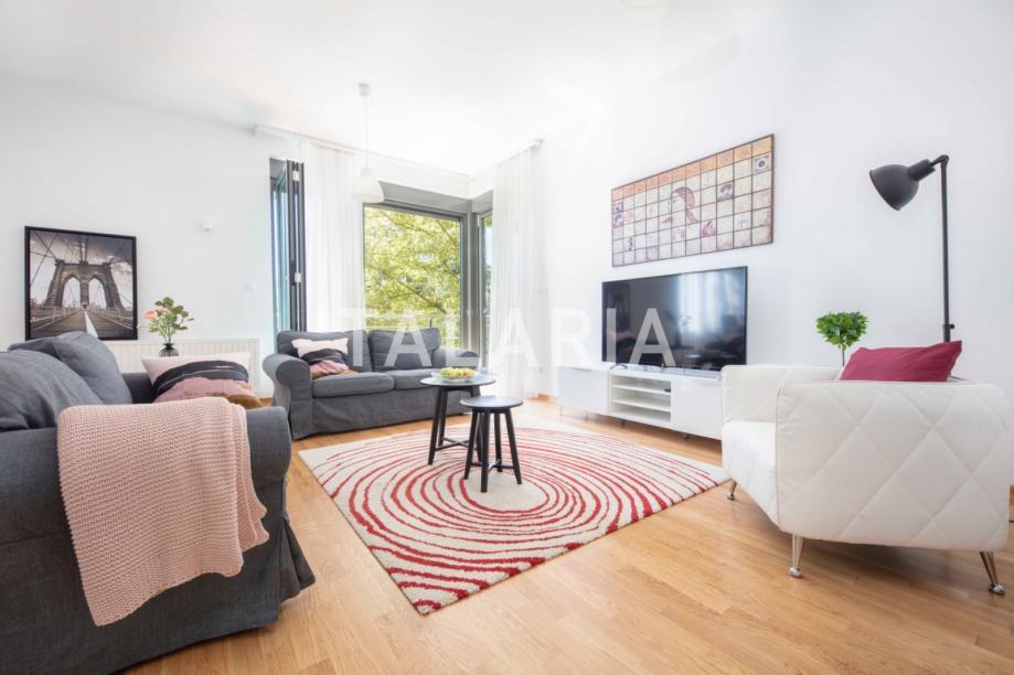 Modern and spacious apartment with high ceilings, large windows with electric blinds. High quality materials. Only three apartments in the building.