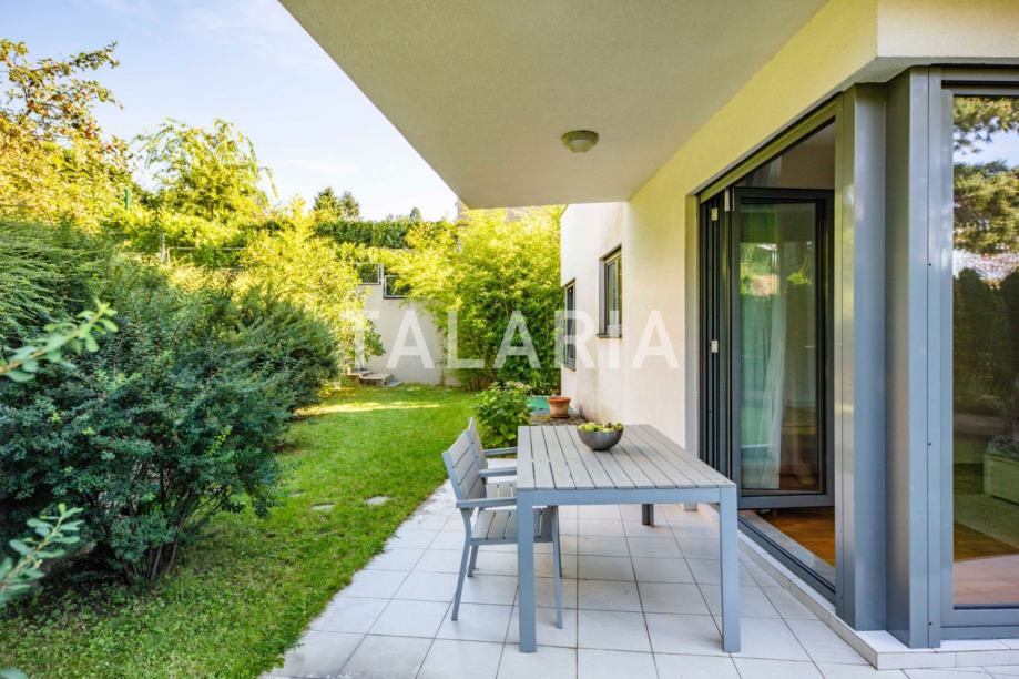 Jako lijep, moderan, četverosoban stan površine 165m2 u prizemlju urbane vile. Stan se sastoji od ulaza, 3 spavaće sobe, velikog dnevnog boravka sa kaminom, opremljene kuhinje, 2 kupaonice, 2 terase i vrta. Pripada mu garaža i podrumski prostor.
