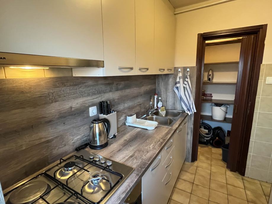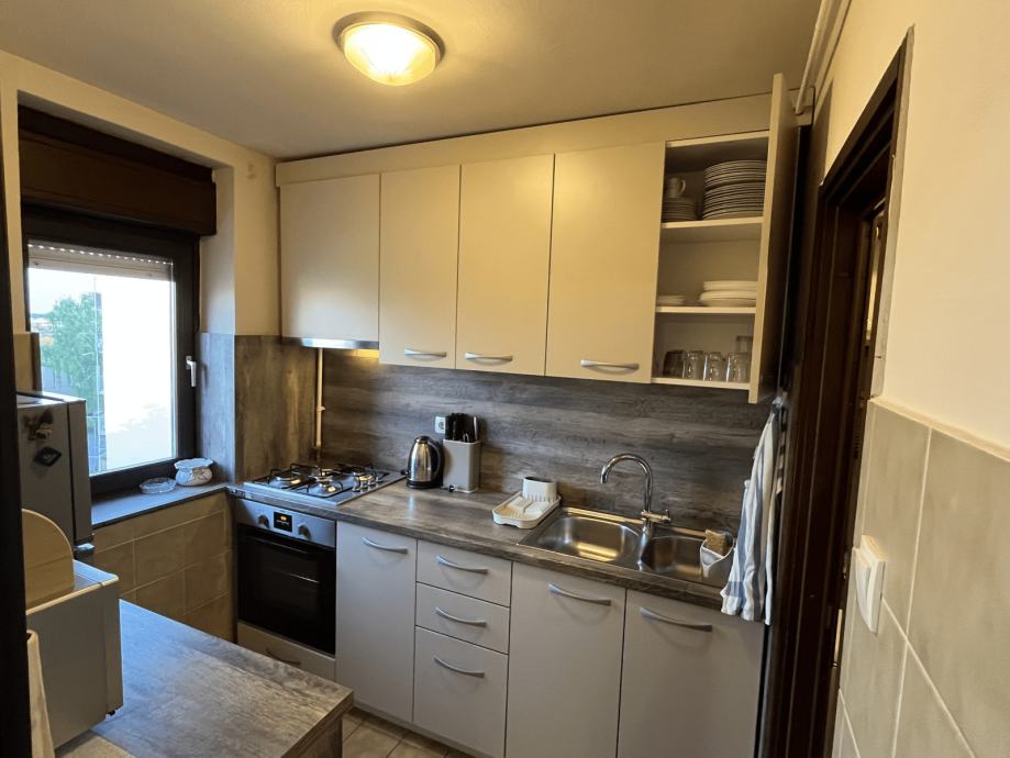 - kuhinja renovirana 2023. godine (sve potrebno za kuhanje i posluživanje); frižider, mikrovalna, novi štednjak i napa