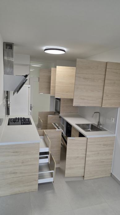 U stanu se nalazi nova kuhinja s priključcima: hladnjak, pećnica, ugradbena ploča za kuhanje, napa i perilica posuđa. Nova kupaonica opremljena je tuš-kabinom, perilicom rublja i ostalom opremom.