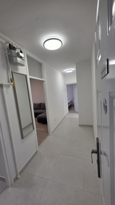Iznajmljujem se stan POTPUNO RENOVIRAN I NAMJEŠTEN 2025/2026 GODINE u dugoročni najam. U stanu se nalazi nova kuhinja s priključcima: hladnjak, pećnica, ugradbena ploča za kuhanje, napa i perilica posuđa. Nova kupaonica opremljena je tuš-kabinom, perilicom rublja. Nova rasvjetna tijela u svim prostorijama podesivi po boji i jačini osvjetljenja. Na balkonu su postavljene nove pločice, stakla, obojan i dr., dakle u potpunosti renoviran.