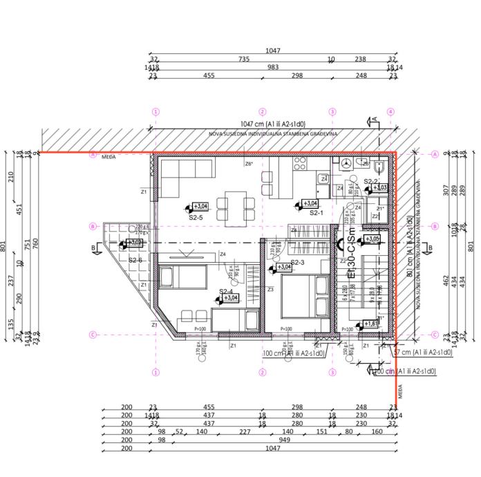 protuprovalna vrata, PVC stolarija u boji ,troslojno staklo, osigurana vrhunsku zvučna i toplinska izolacija, fasada 15 cm, grijanje plinsko etažno, klimatizacija.