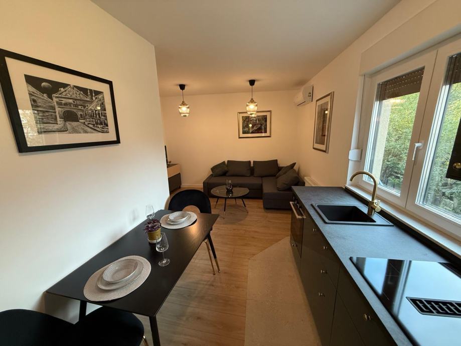 Iznajmljuje se novo uređeni stan u prizemlju zgrade, potpuno namješten..