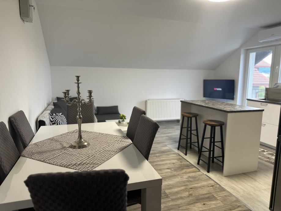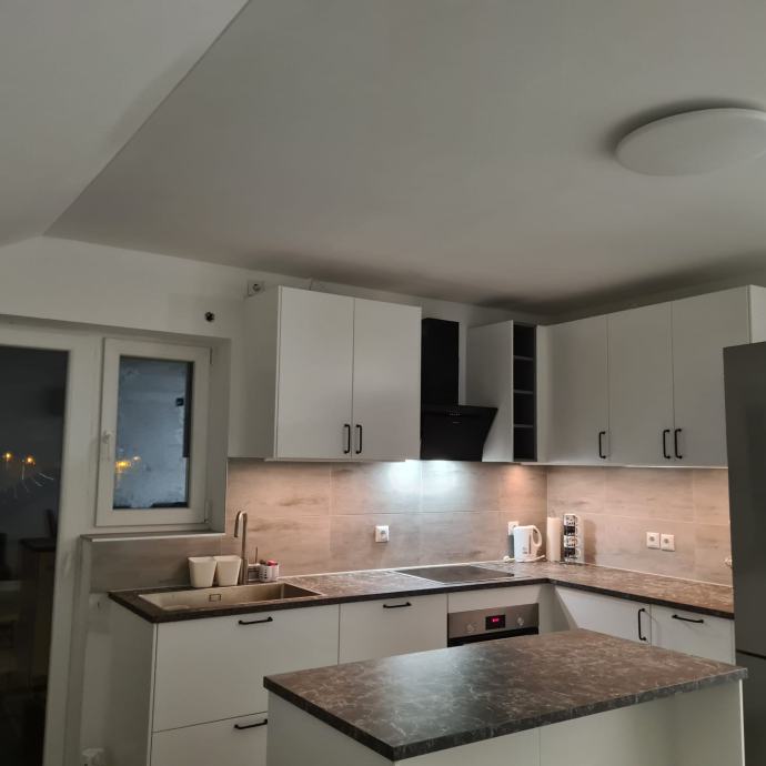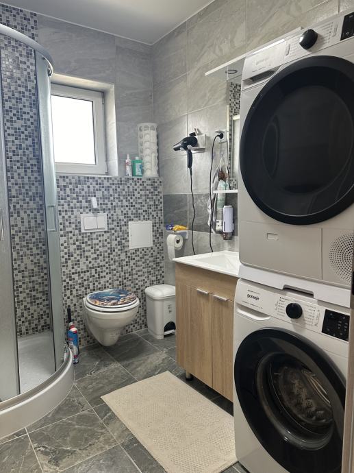 Novouredjen stan u obiteljskoj kuci, novi namjestaj, prvo useljenje! Sastoji se od otvorenog dnevnog boravka s blagavaonicom, kuhinjom i izlaskom na balkon, odvojene 2 spavace sobe, tri kupaonice i 2 wc-a , 2 perilice i 1 sušilica rublja, klima uredjaj, svaka soba ima TV, SPA soba za opuštanje i jacuzziem , lezaljkama i izlaskom na balkon/ loggiu. Uz stan dolaze dva vanjska parkirna mjesta s videonadzorom. U neposrednoj blizini nalaze se svi bitni sadržaji-autobusna i željeznička stanica,trgovina,pekara,park,vrtić,škola i sve što je potrebno za udoban život.