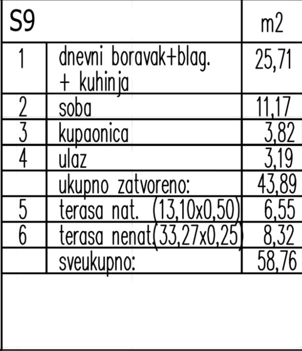 Prodaje se dvosoban stan oznake S9 u novogradnji, smješten na trećem (zadnjem) katu manje stambene zgrade. Završetak radova predviđen je za ljeto 2026. godine.