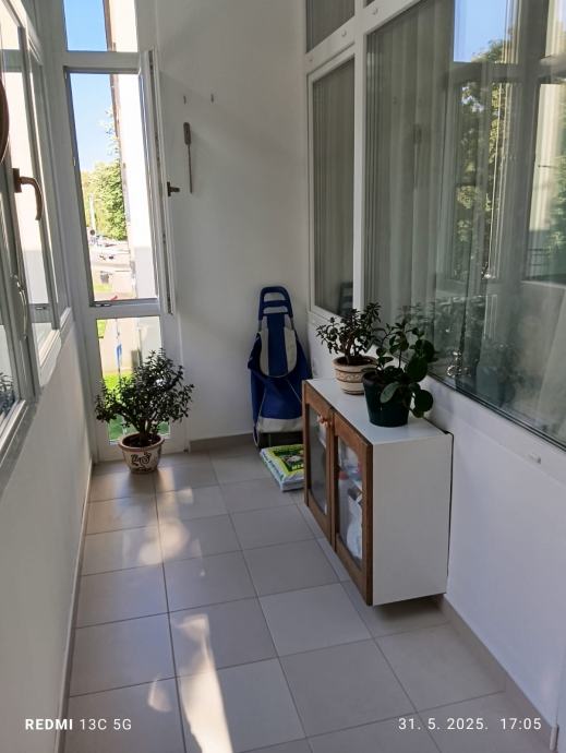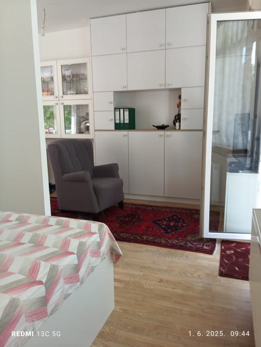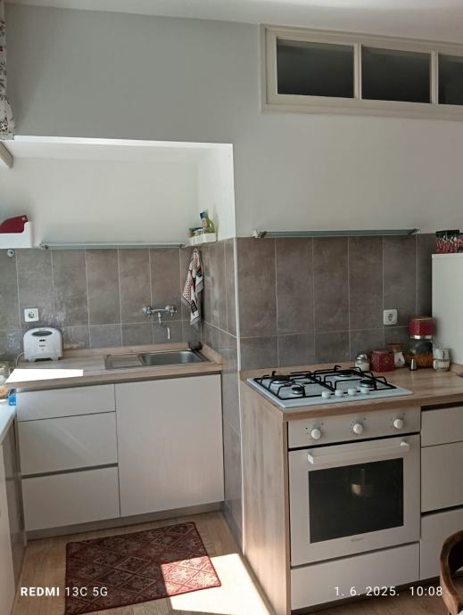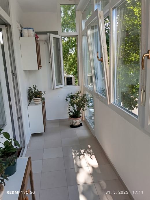 Stan je na prvom katu, orijentacija istok-sjever, kompletno adaptiran 2018. godine, sve instalacije (struja, voda, plin, centralno etažno ) zidovi, podovi, prozori, namještaj po mjeri. Stan se sastoji od ulaznog hodnika, kupaone i wc, open space kuhinje sa blagavaonom, sobe, spavaće sobe i prostranog balkona.