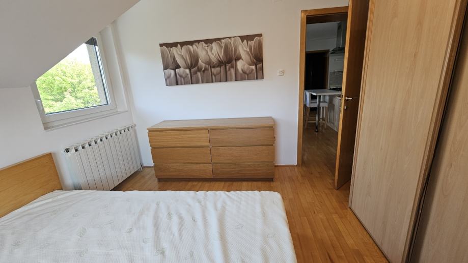 Prodaje se potpuno namješten stan, pogodan i za dugoročno iznajmljivanje. Sastoji se od jedne spavaće sobe, dnevnog boravka s blagovaonicom i kuhinjom, kupaonicom i balkonom.