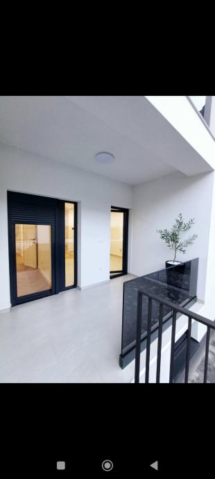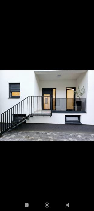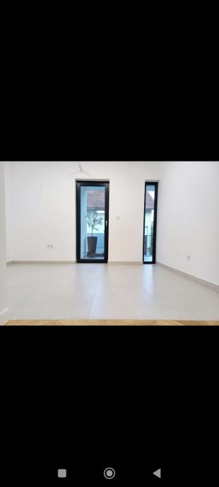 Sastoji se od dnevnog boravka, dvije spavaće sobe od kojih jedna ima dodatni prostor/ugradbeni ormar, kuhinje, kupaonice i blagovaonice te lođe koja je stepenicama povezana s u dvorištem površine 60m2 koje pripada stanu. Iz dvorišta se ulazi u grijani spremišni prostor veličine 25 m2 koji također pripada stanu.