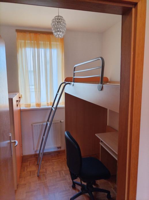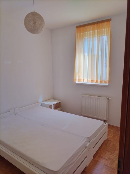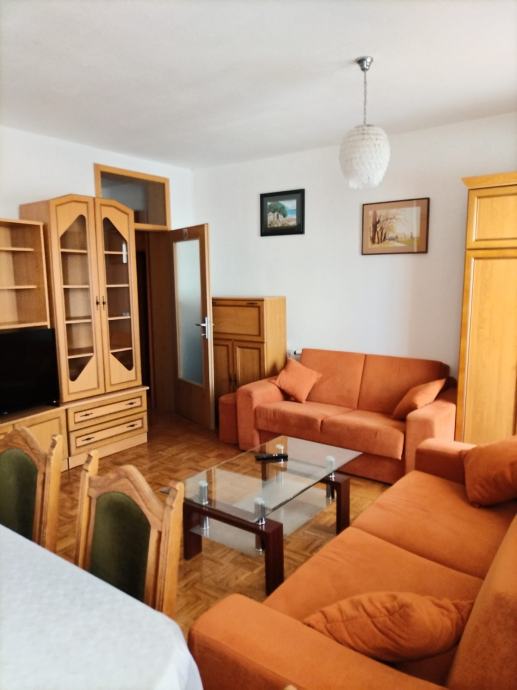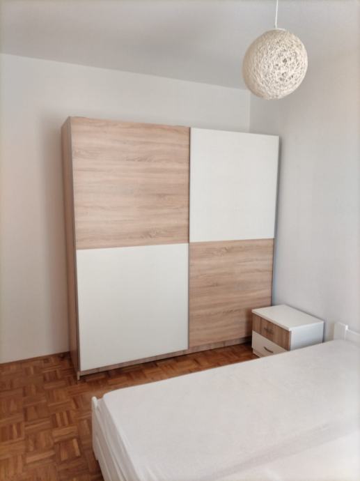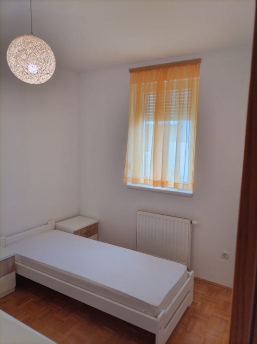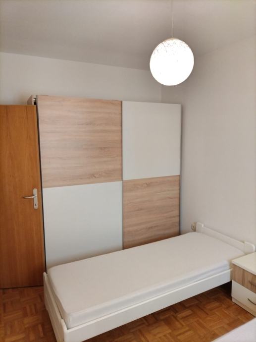 Iznajmljuje se trosoban stan u Sigetu, stan se nalazi na odličnoj lokaciji u stambenoj zgradi (1 kat). Sastoji se od hodnika, dnevnog boravka, veće spavaće sobe u kojoj se krevet može koristiti kao bračni, ali i kao dva odvojena ležaja (trenutno je bračni krevet) i manje spavaće sobe, kuhinje, blagavaone, manjeg wc-a, kupaonice s wc-om i balkona. Stan je namješten, trosjed i dvosjed mogu se razvući u ležaje(160x180 i 120x180).Nova perilica rublja.Moguć priključak na internet i sl. Parking je vlastito garažno mjesto. Blizina tramvaja, busa, vrtića, škole, doma zdravlja, Avenue Malla.
