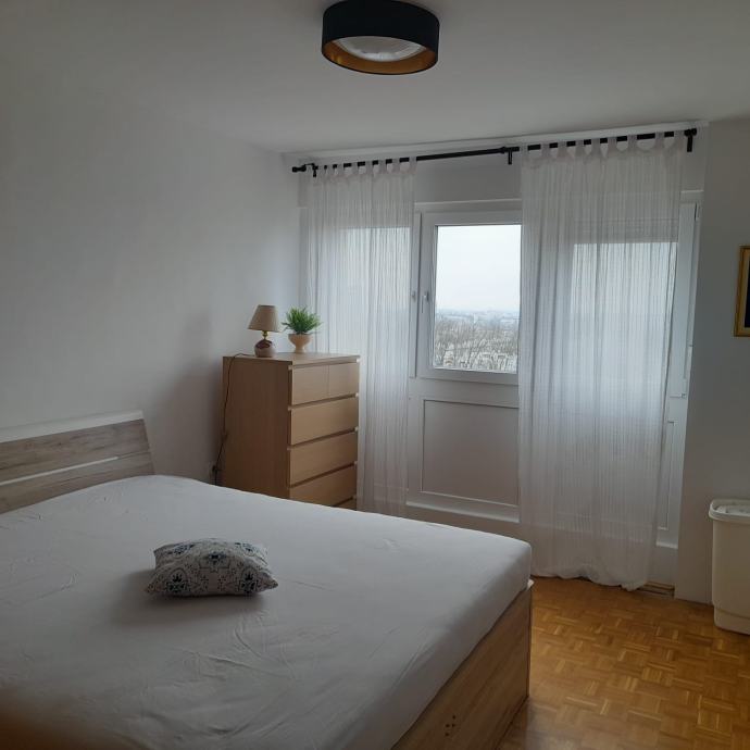 Iznajmljuje se potpuno namješten stan u Zagrebu, idealan za dugoročni najam. Stan se nalazi na odličnoj lokaciji (blizina javnog prijevoza, Parka mladenaca i Avenue Mall-a). Orijentacija stana je zapad i sjever. Pogled na Park mladenaca i Velesajam.