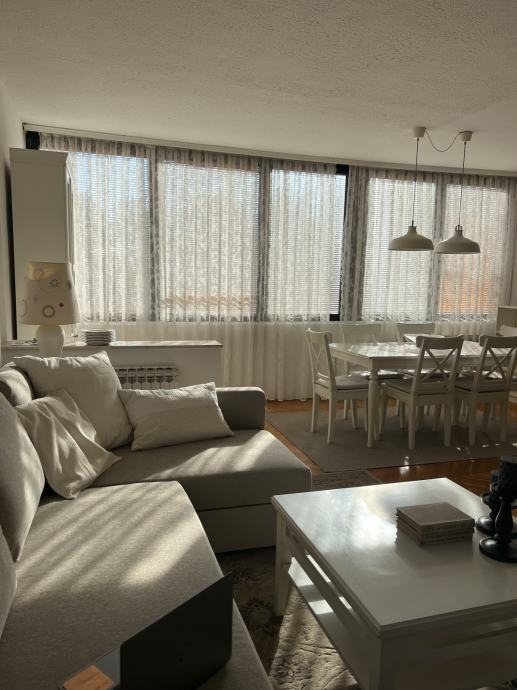 Iznajmljuje se stan u stambenoj zgradi, na drugom katu s liftom . Stan je svijetao i prostran, kompletno opremljen, ugodan za stanovanje. Moguce imati malog psa, naucenog na zivot u stanu.