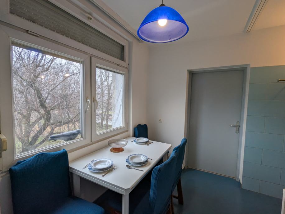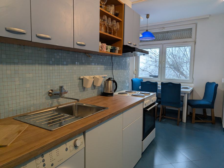 U blizini se nalazi Velesajam, Avenue Mall, škola, vrtić, trgovine i park Mladenaca. Okružen je zelenilom i 7minuta pješice nalazi se tramvajska i autobusna stanica. Idealan za mladi bračni par ili cimere.
