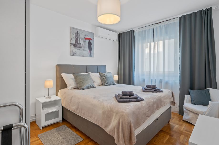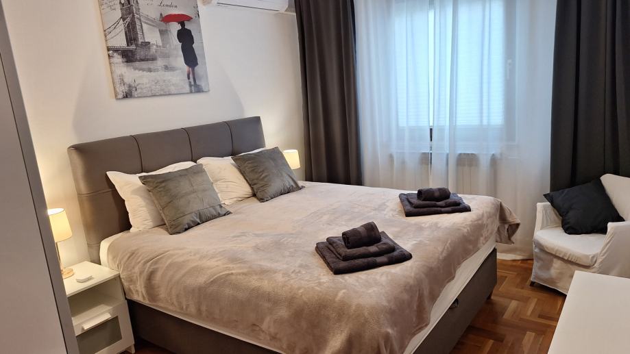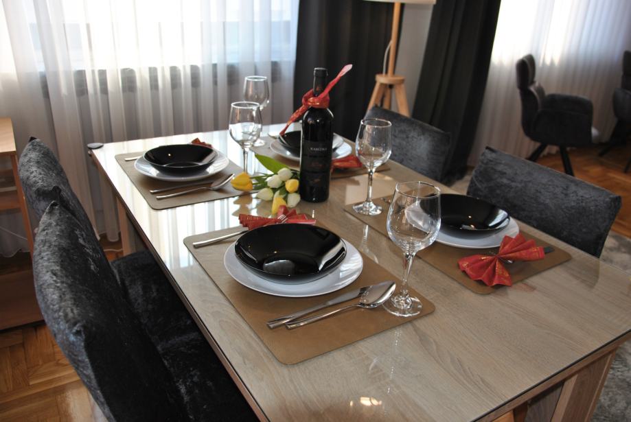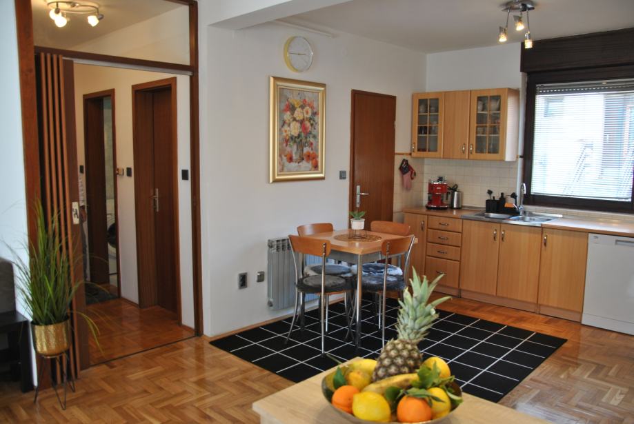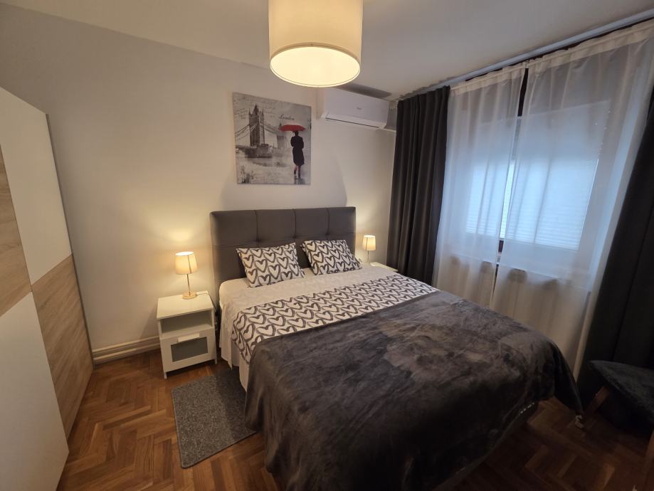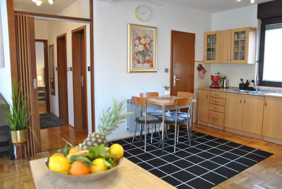 Luksuzno opremljen i potpuno namješten stan 82 m2 iznajmljujem. Stan je orijentiran S-J-I i sastoji se od dnevnog boravka, blagovaonice, kuhinje sa izlazom na terasu, 2 spavaće sobe, hodnika, kupaonice sa WC - om i zasebnog WC-a te ostave. Opremljen je sa svim aparatima (štednjak, frižider, perilica rublja, suđerica, 2 klima uređaja, veliki novi smart TV... ) Nalazi se blizu Parka stara Trešnjevka, blizu Trešnjevačkog placa, tramvajske i autobusne stanice, u mirnoj i tihoj ulici, u blizini škole, ambulante, dućana . Stan je svijetao, prozračan i jako ugodan za život, mir i tišina susjedstva, male režije i u ulici besplatni parking. Iznajmljuje se na duže razdoblje sa ugovorom minimalno na godinu dana.