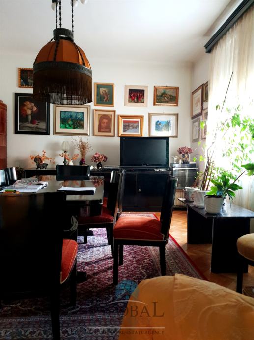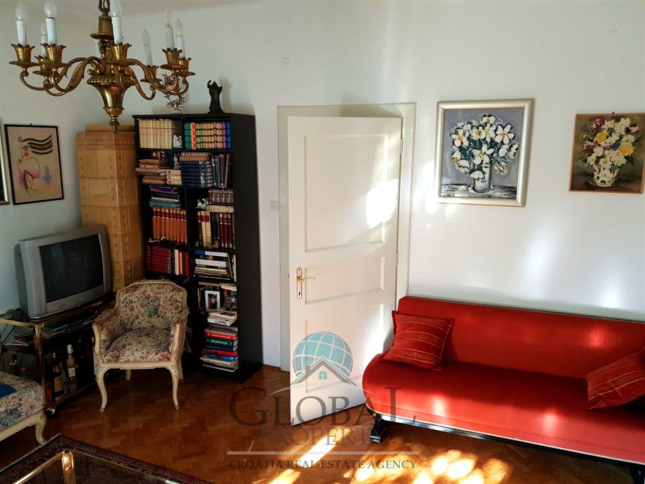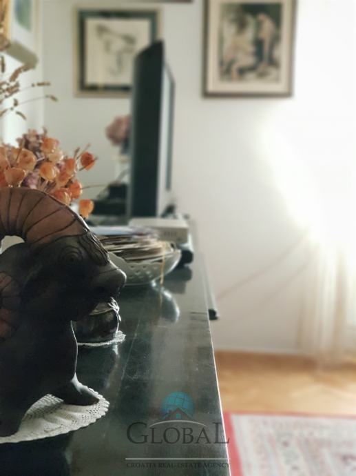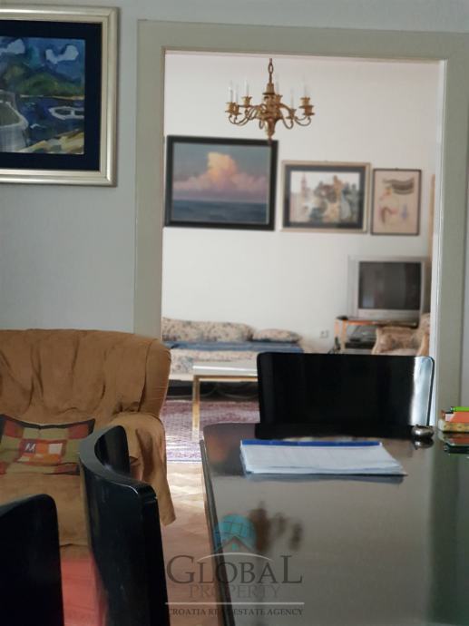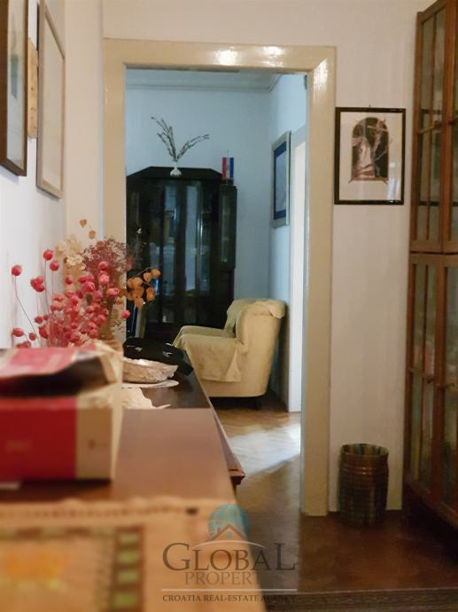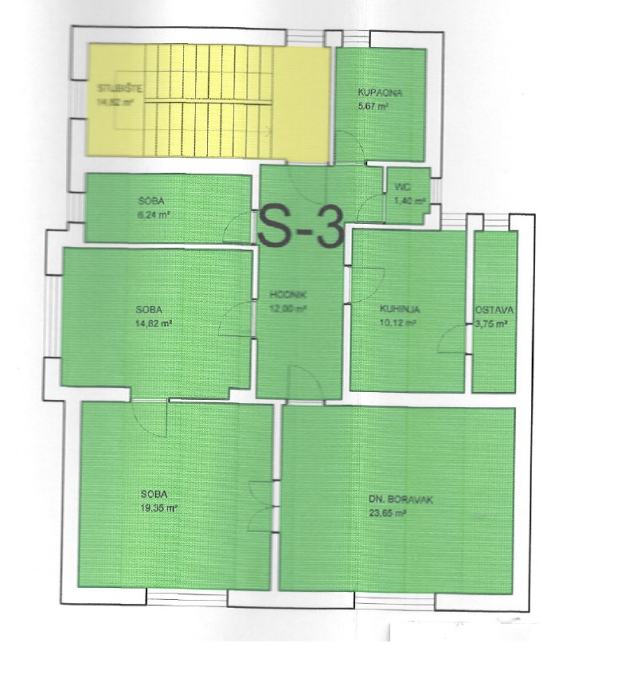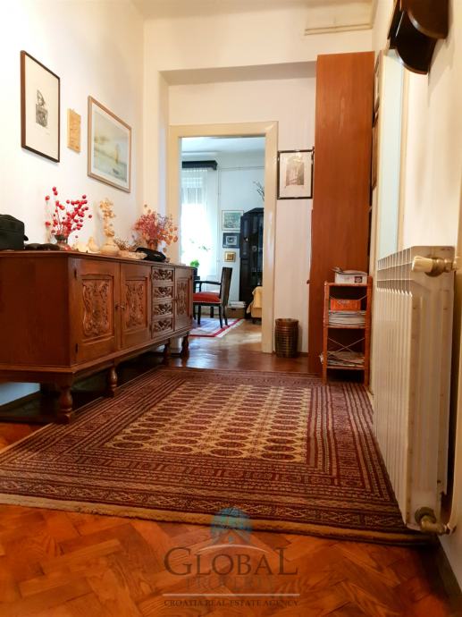 Nalazi na polu katu zgrade, odnosno u visokom prizemlju, ispod stana je u suterenu također stambeni grijani prostor, njegova površina iznosi 97 m2, ali zbog vrlo dobro raspoređenih prostorija ostavlja dojam kao da je puno veći. Stan pruža sljedeće prostorije: