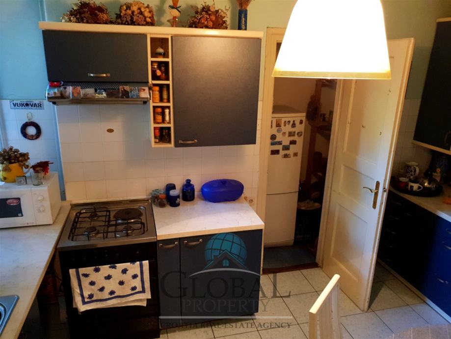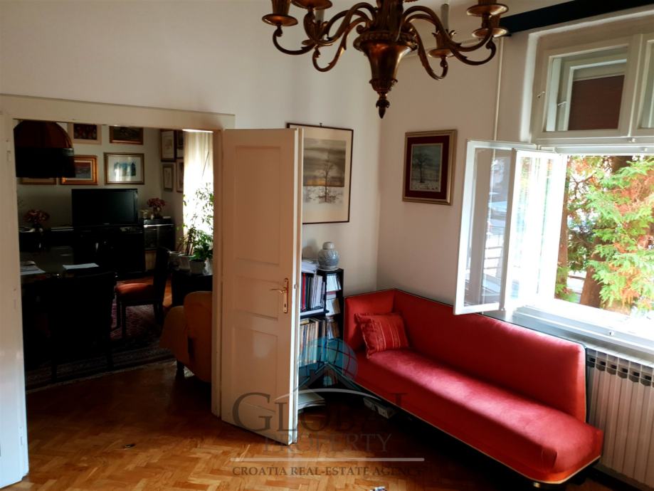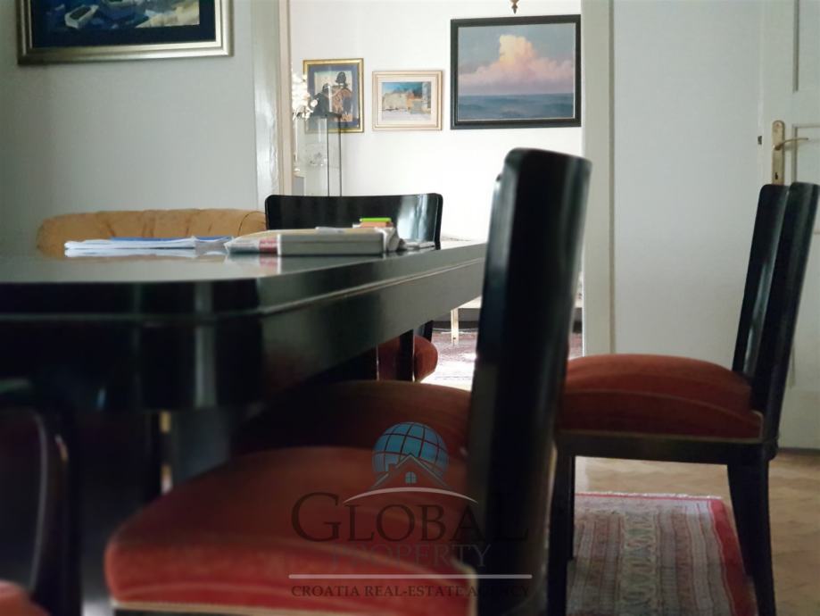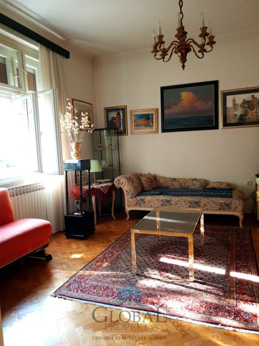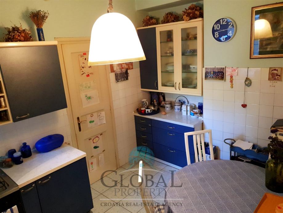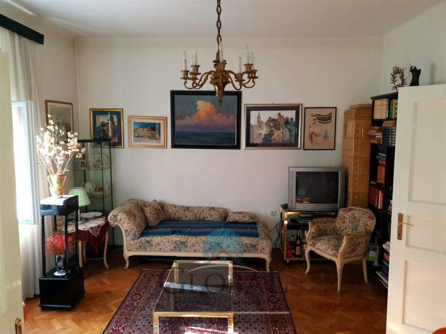 Nalazi na polu katu zgrade, odnosno u visokom prizemlju, ispod stana je u suterenu također stambeni grijani prostor, njegova površina iznosi 97 m2, ali zbog vrlo dobro raspoređenih prostorija ostavlja dojam kao da je puno veći. Stan pruža sljedeće prostorije: