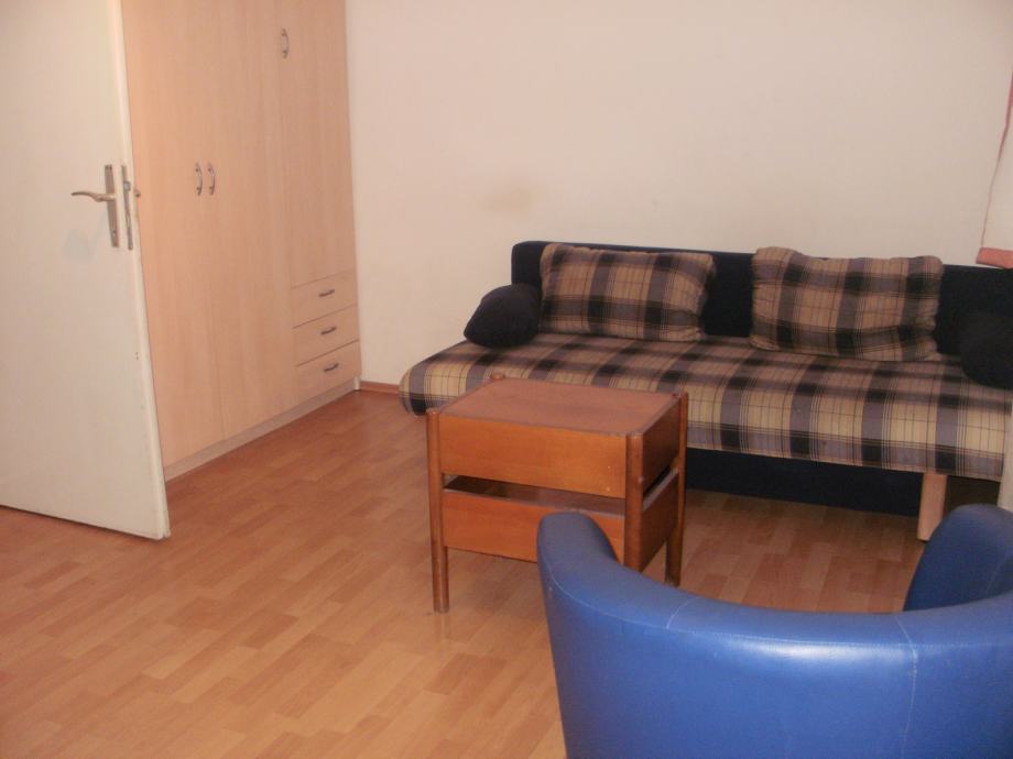 Stan se sastoji od 1 zasebne sobe, kuhinje i kupaonice s wc-om. Stan je potpuno opremljen, a grijanje je centralo (najjeftinija opcija režija). Cijena najma je popularna jer se stan iznajmljuje na duže vrijeme: 3100,00 kn + režije + polog 1000,00 kn.