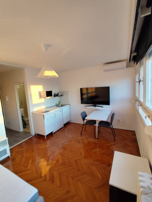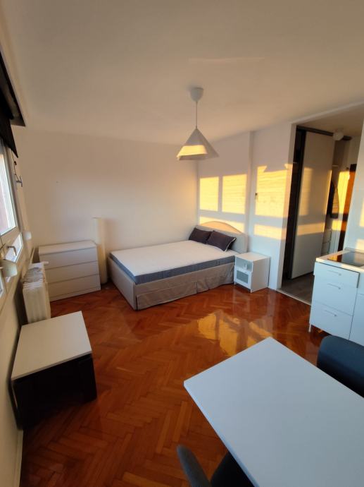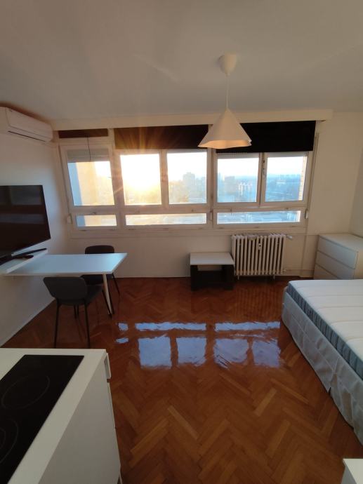 Iznajmljuje se uredna i potpuno namještena garsonjera od 22 m² na 13. katu stambene zgrade u Zagrebu. Stan je funkcionalno organiziran, svijetao i održavan, spreman za useljenje.