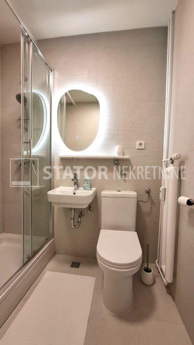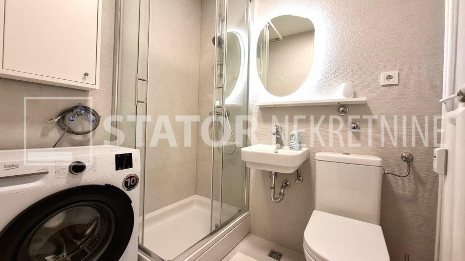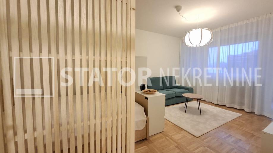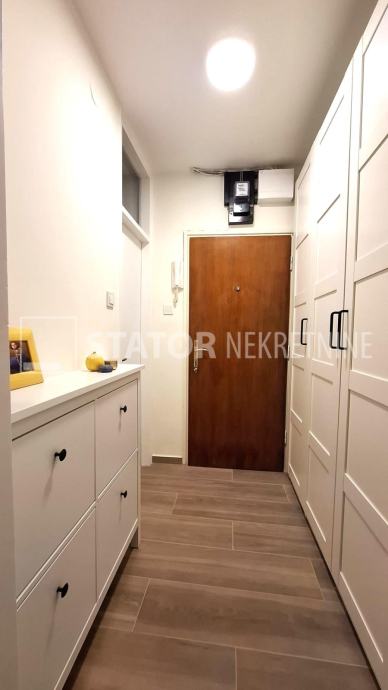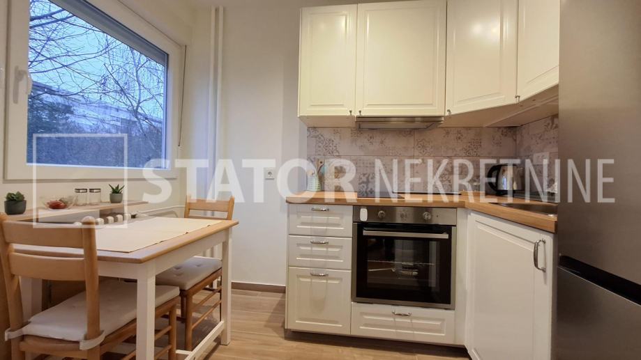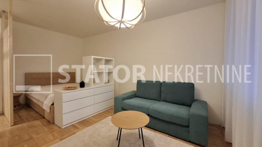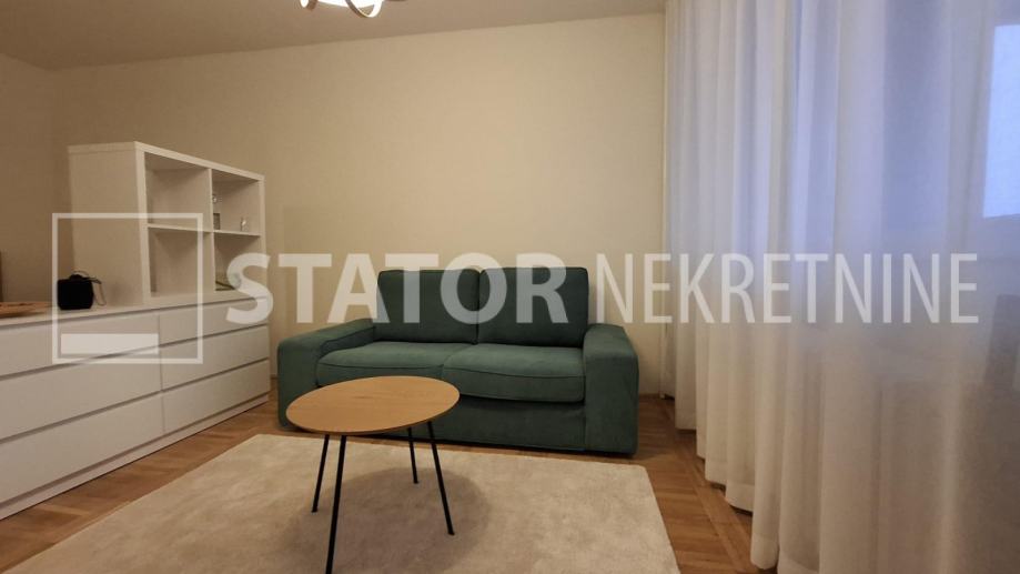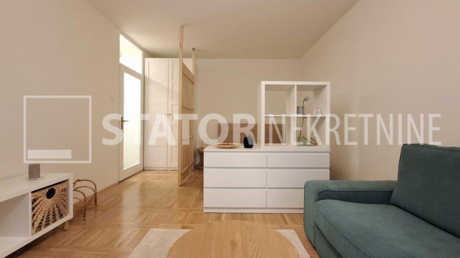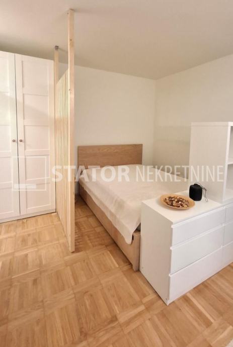 NOVI ZAGREB, SOPOT, OŠTROGOVIĆEVA, iznajmljuje se jednosobni, tek uređeni stan na 2. katu zgrade bez lifta. Sastoji se od ulaznog hodnika u kojem su veliki garderobni ormari i ormar za cipele. Lijevo od ulaza nalazi se dnevno – spavaća soba sa izlaskom na prostranu loggu. Ravno od ulaza je kuhinja sa prostorom za blagovanje, desno kupaonica. Stan je u potpunosti renoviran; novi prozori i vrata, novi podovi, u kupaonici i kuhinji nove instalacije vode, novi sanitarije, nove pločice. Dnevno spavaća soba sa novim krevetom ( krevet je manjom drvenom stijenom odvojen od ulaza i policama od dnevnog prostora), ormarom, policama za odlaganje i novi trosjed. U kuhinji kuhinjski elementi sa novim aparatima ( peć sa pećnicom i hladnjak za škrinjom za zamrzavanje), novi stol i stolice, u kupaonici nova perilica rublja i na loggi novi stol i stolice. Grijanje na toplanu, U neposrednoj blizini je tramvajska i autobusna stanica, marketi, na nekoliko minuta tržnica…..ODLIČAN, SVIJETAO STAN U KOJEM JE UGODNO BORAVITI!!!!