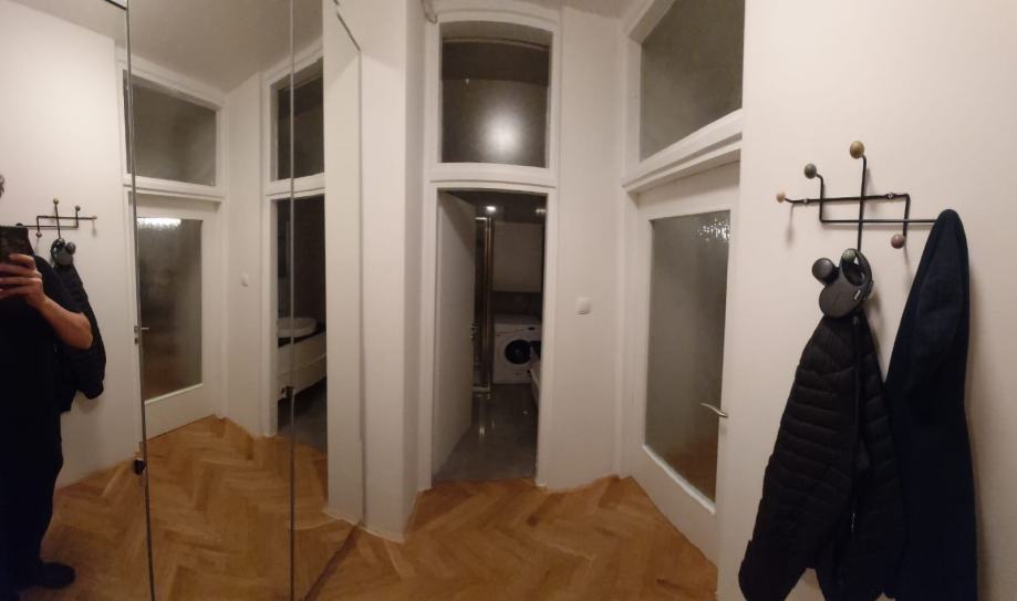 Sastoji se od hodnika, kupaonice s tuš kabinom, balkona i sobe u kojoj se nalaze kuhinja, dnevna soba i vizualno odvojena spavaća soba.