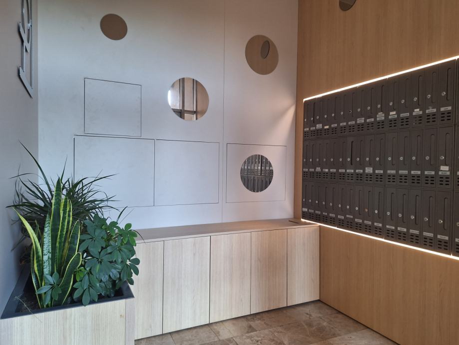 Stan se nalazi u stambenoj zgradi izgrađenoj 2012.g., na 6. katu ( koji je ujedno i zadnji kat). Zgrada je uredna i vrlo dobro održavana.
