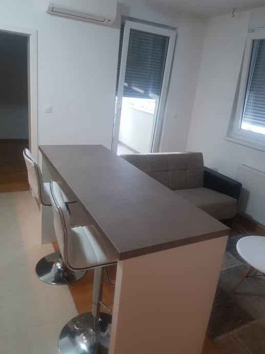 Stenjevački odvojak, ulica Marije Radić 6, novogradnja. Stan je namješen novim namještajem i novim električnim uređajima. Stan je opremljen klima uređajem te centralnim grijanjem preko toplane. Uz stan također dolazi garažno mjesto sa centralnim vratima na daljinsko upravljanje te spremište. Zgrada je izgrađena prema najnovijim standardima te zaštićena video nadzorom. Stan se iznajmljuje isključivo za dvije osobe max.