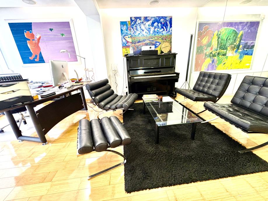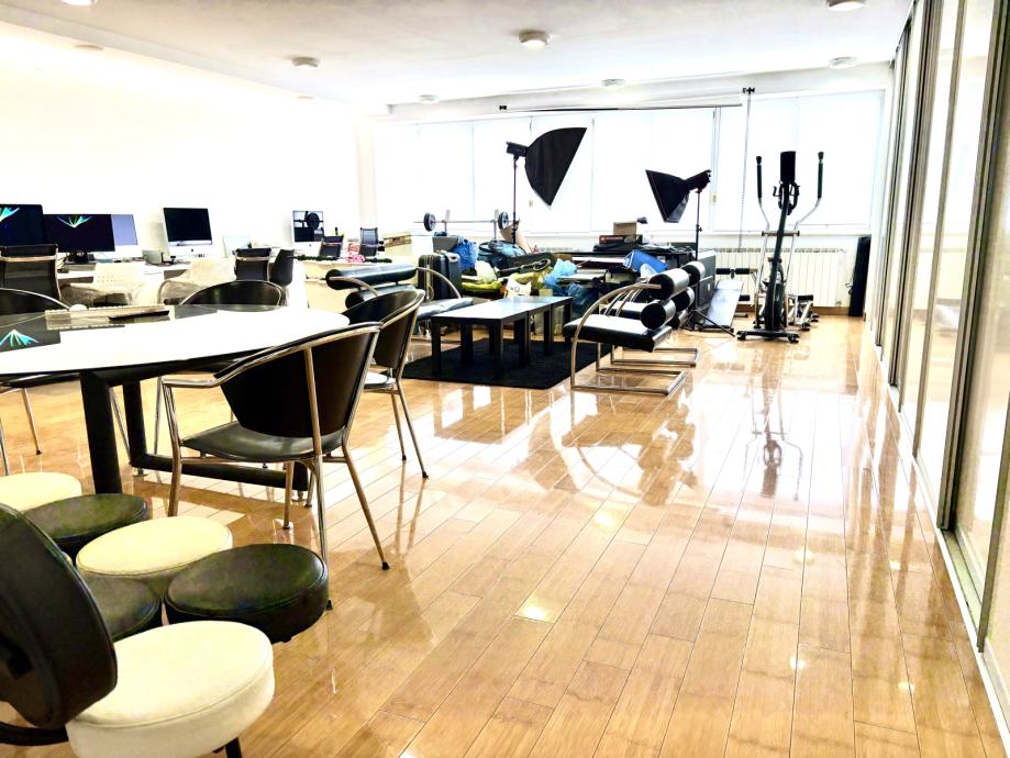 Prostor je trenutno uređen i korišten kao ured za grafički dizajn, a zbog rasporeda (bez stupova ili nezgodnih nosivih zidova) i kvalitete idealan je za:
