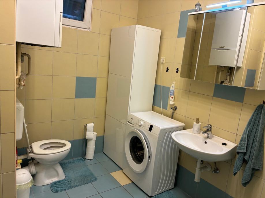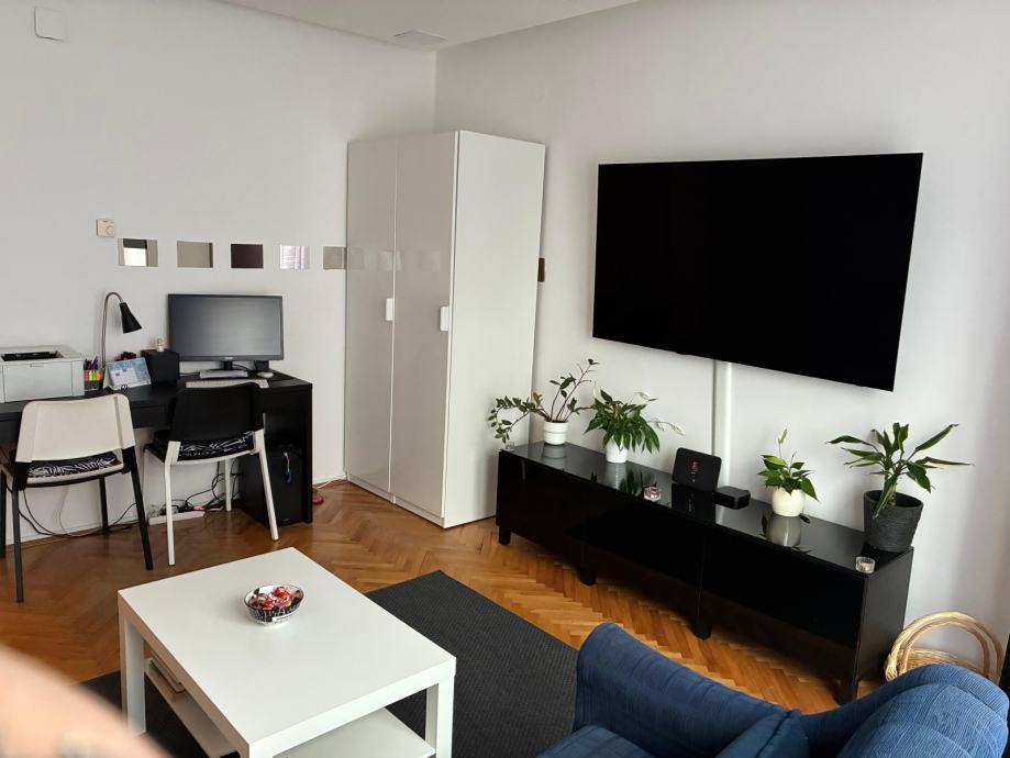 Uređeni stan idealan za zaposleni par, u blizini tramvajskih (linije 5 i 17 - 5 min hoda) i raznih autobusnih linija (koje voze po zagrebačkoj aveniji - 2 min hoda), smješten na kvartovskom trgiću, uz mnoštvo raznih dućana, ugostiteljskih objekata i drugih sadržaja.