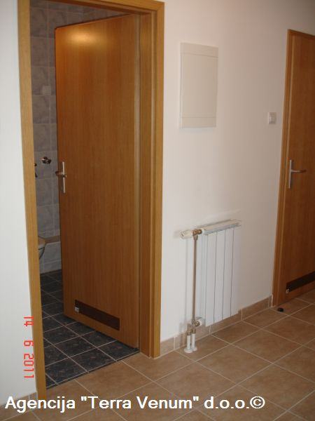 PVC prozori, hrastovi štokovi i vrata (unutarnja stolarija), protuprovalna ulazna vrata i videoportafon, kupaonica i WC opločeni su do visine stropa keramičkim pločicama, podovi u sobama su klasični hrastovi parketi, u ulaznim prostorima, kuhinjama, kupaonicama i WC-ima keramičke podne pločice, na lođi keramičke pločice, kupaonice su opremljene sanitarnom opremom i armaturom, etažno plinsko grijanje s termostatom za regulaciju temperature, radijatori u sobama i kuhinji,