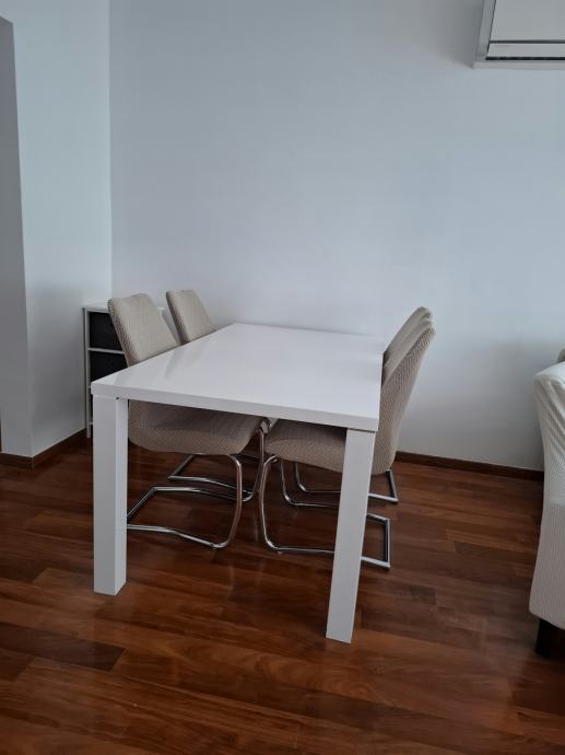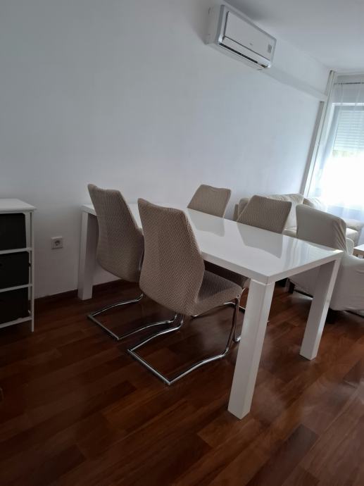 Stan je namješten, a opremljen je klima uređajem, protuprovalnim vratima, PVC stolarijom, perilicama rublja i suđa, pećnicom, napom, hladnjakom i svim ostalim aparatima.