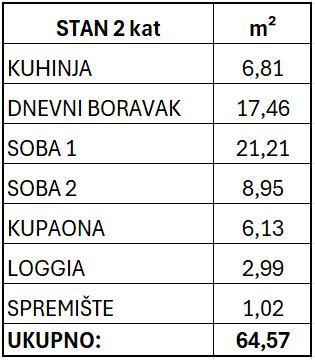 - dvije spavaće sobe 21,21 m2 i 8,95 m2
