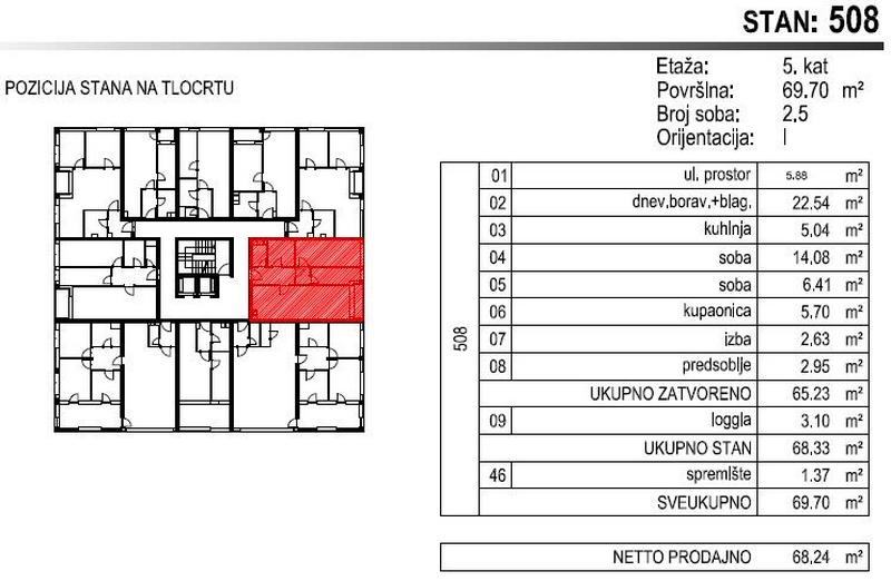Stan se nalazi na 5. katu, ukupne površine 69.70m2