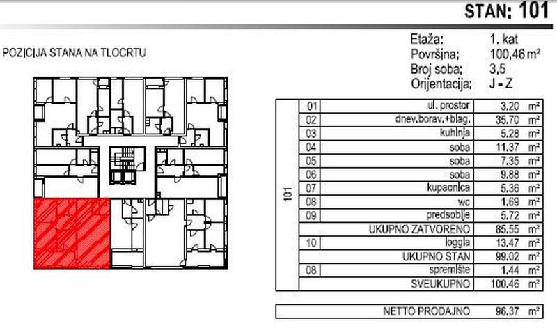 Stan se nalazi na 1. katu, ukupne površine 100.46m2