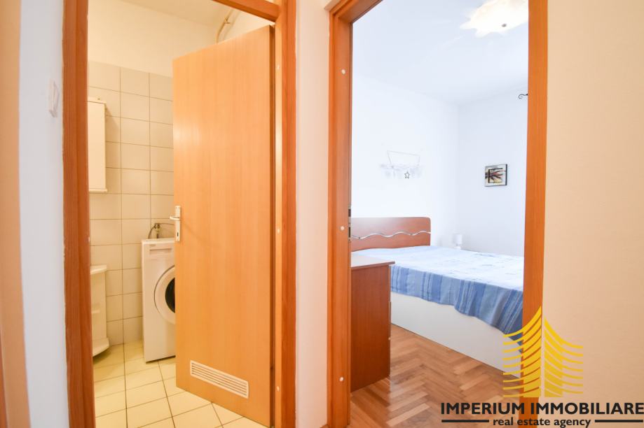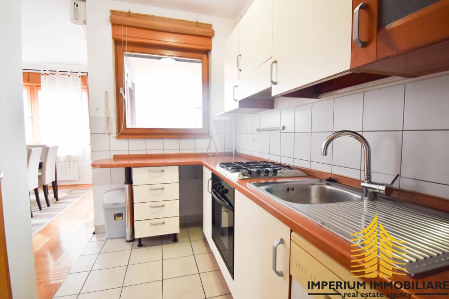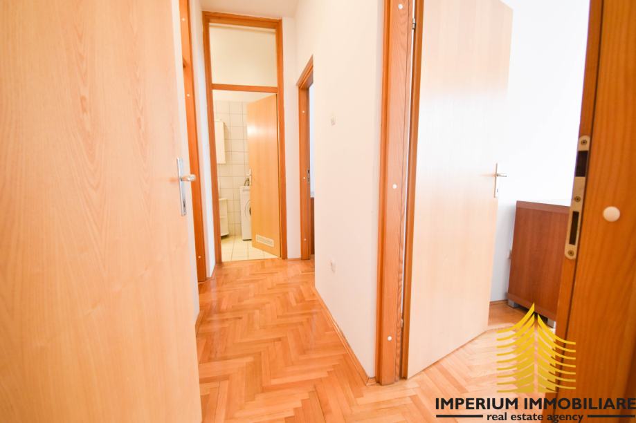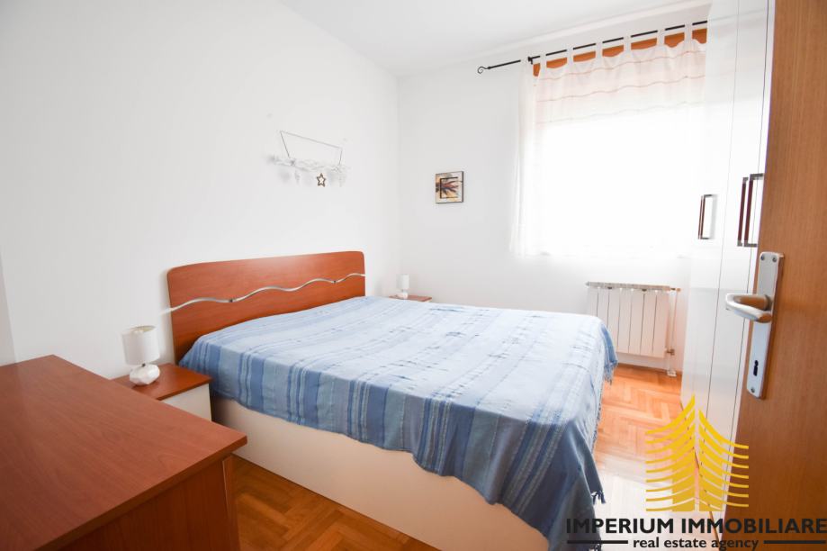 Sastoji se od ulaznog hodnika, 3 spavaće sobe, dnevnog boravka, blagovaone s kuhinjom i ostavom, kupaonicom, 2 wc-a, garderobne prostorije, lođe, ostave u podrumu. Stan je potpuno namješten i opremljen.