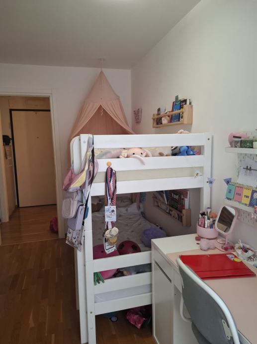Iznajmljuje se trosoban stan od 62m2 na 1katu + GPM na -1 u Špansko Oranice (ulica Pavlenski put). Stan ima dnevnu sobu s kuhinjom i lođom, dječju sobu s krevetom na kat, radnim stolom i ormarom, bračnu sobu s krevetom 160x200 i oramrom i komodom + kupaona. Stan je potpuno namješten (perilica/sušilica rublja, perilica suđa, mikrovalna, klima...)