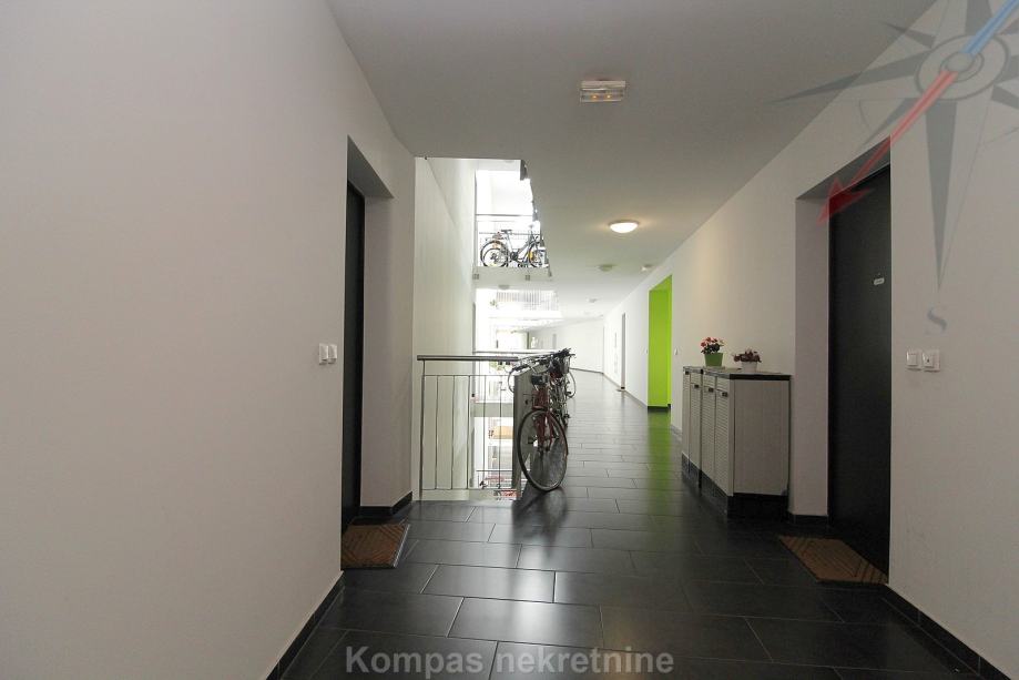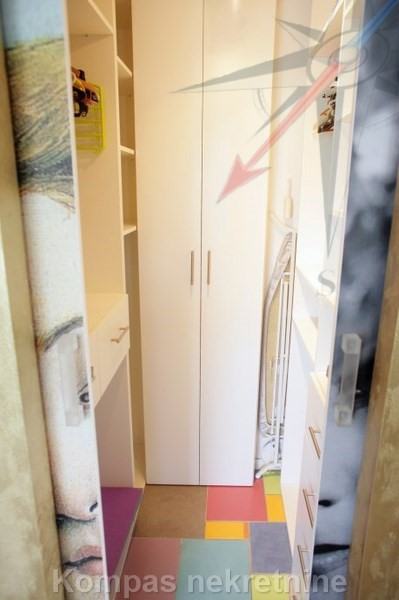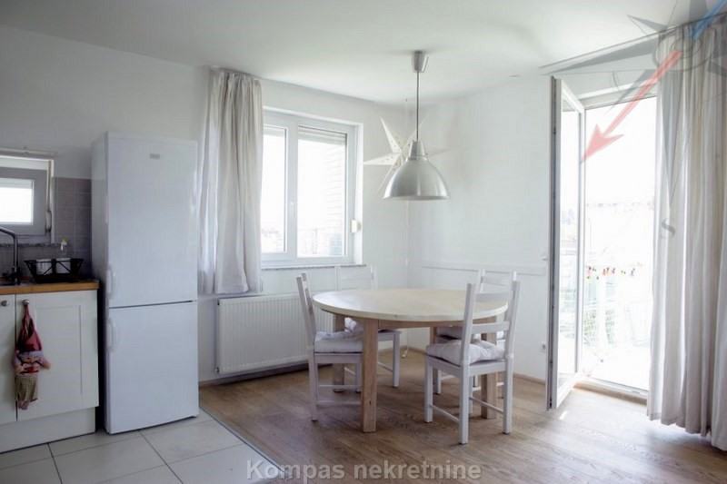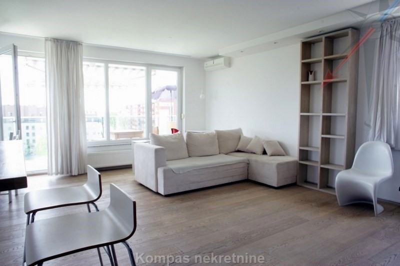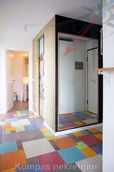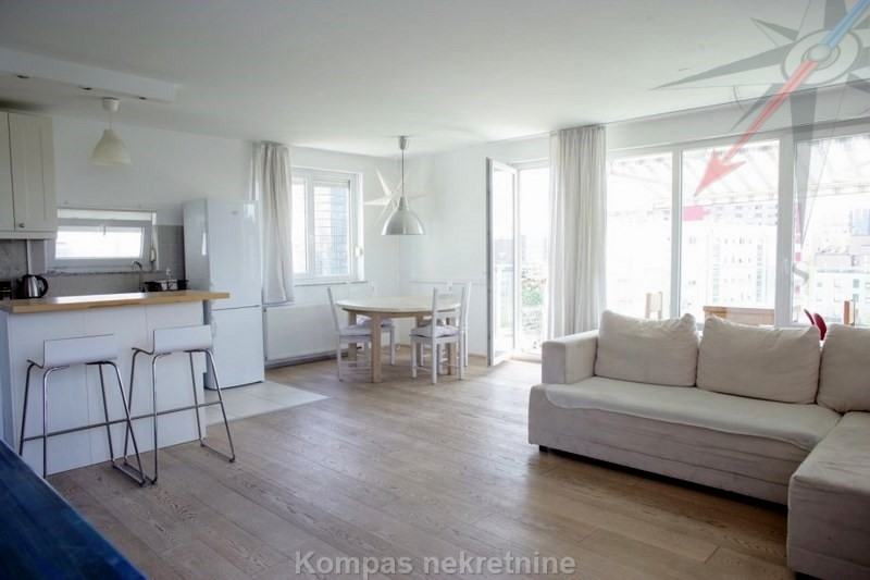 Moderno namješten trosoban stan od 72 m2 na petom katu stambene zgrade s liftom, Pavlenski put. Sastoji se od ulaznog prostora, kuhinje, dnevnog boravka, dvije spavaće sobe, kupaonice, „walk-in“ garderobe. Manja soba ima izlaz na balkon od 5 m2, a dnevni boravak na terasu od 9 m2 koja ima tendu i plinski roštilj. Stan ima portafon, protuprovalna vrata, optički internet, klima uređaj, etažno plinsko grijanje, sve kućanske aparate, posteljinu, pribor za jelo. Pripada mu jedno parkirno mjesto u podzemnoj garaži. Nalazi se u mirnoj ulici, u blizini škole, vrtića, nekoliko trgovačkih centara i javnog prijevoza.