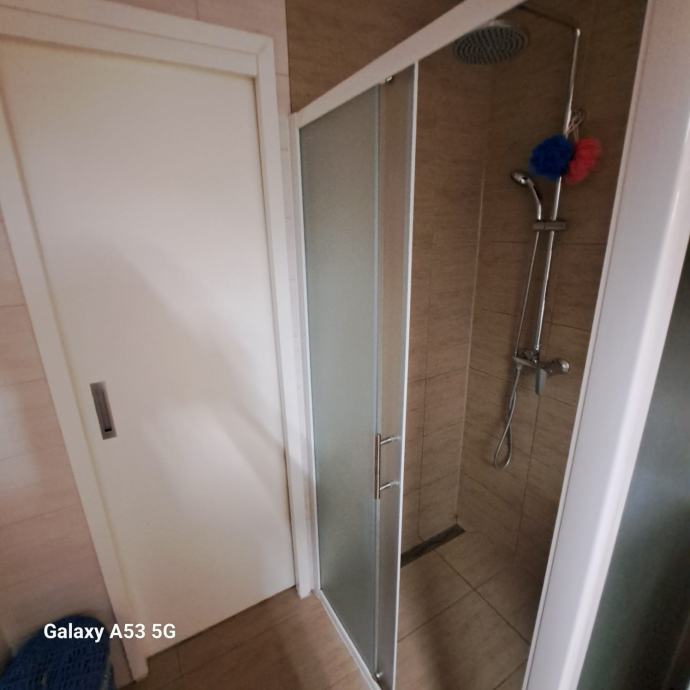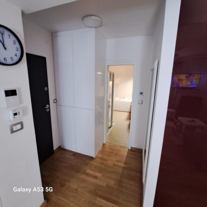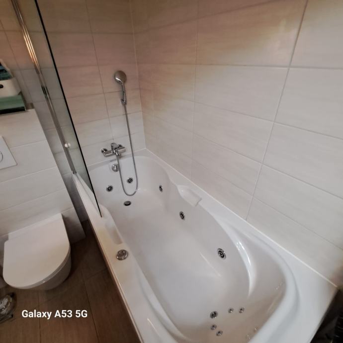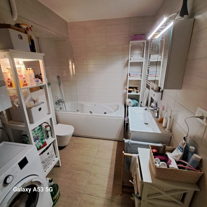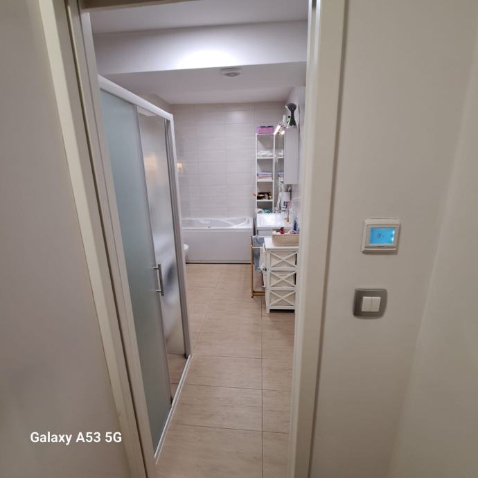 Stan ima klimu, grijanje plinsko etažno, u kupaonici podno grijanje, kupaonica ima tuš kabinu i hidromasažnu kadu, stolarija je PVC,komarnici, protuprovalna vrata, video portafon.