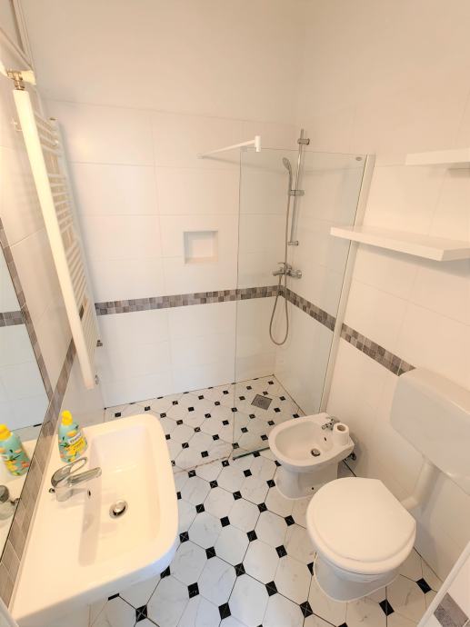 Stan ima kupaonicu (tuš kada) sa wc-om, jednu veliku prostoriju sa ormarima za odlaganje, vešeraj i još jedan manji sanitarni čvor.
