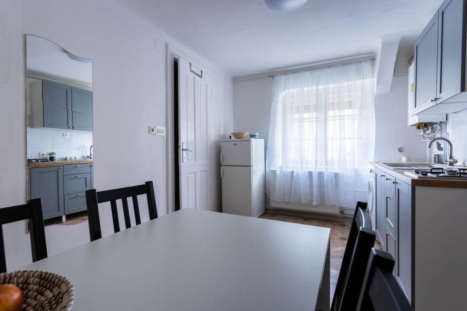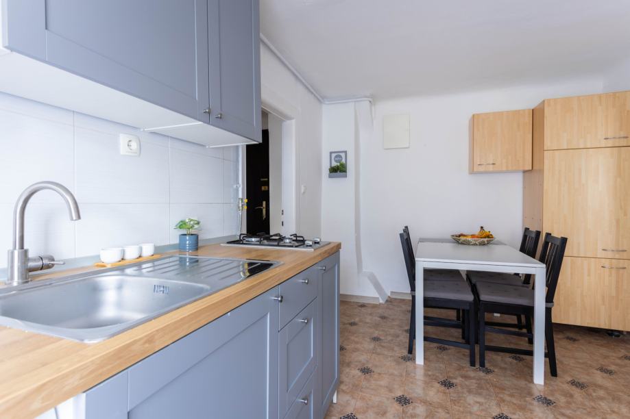 Stan se sastoji od dnevnog boravka s radnim stolom i ormarom, kuhinje s blagavaonom i kupatila s WC-om.