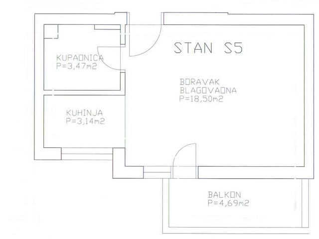 Stan se nalazi na prvom katu male stambene zgrade od ukupno 2 kata. Stan se sastoji od dnevne sobe sa kuhinjom, kupaonice sa wc-om i balkona. Stanu pripada i prostrano spremište u podrumu zgrade.