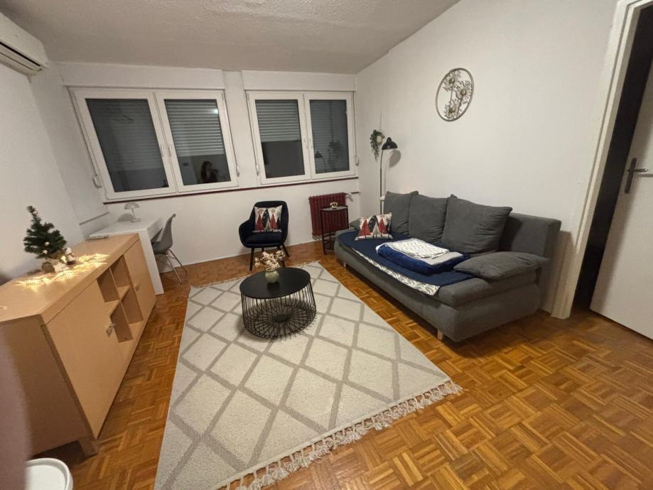 Iznajmljuje se dvosobni stan od 46m2 u Srednjacima za dugoročni najam. Stan se sastoji od spavaće sobe, dnevne sobe s kaučem na razvlačenje, kuhinje s blagavaonicom i kupaonice s WC-om. Ispred zgrade je besplatan parking, a u neposrednoj blizini su škola, trgovine, tramvajska i autobusna stanica.