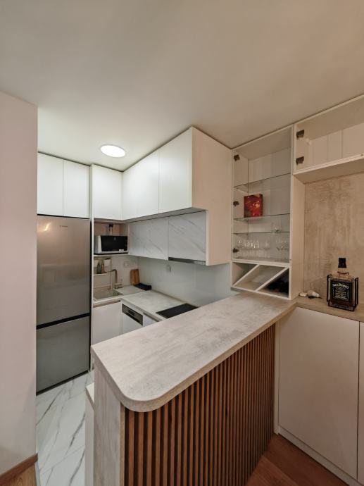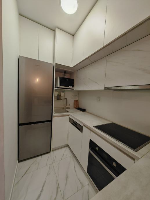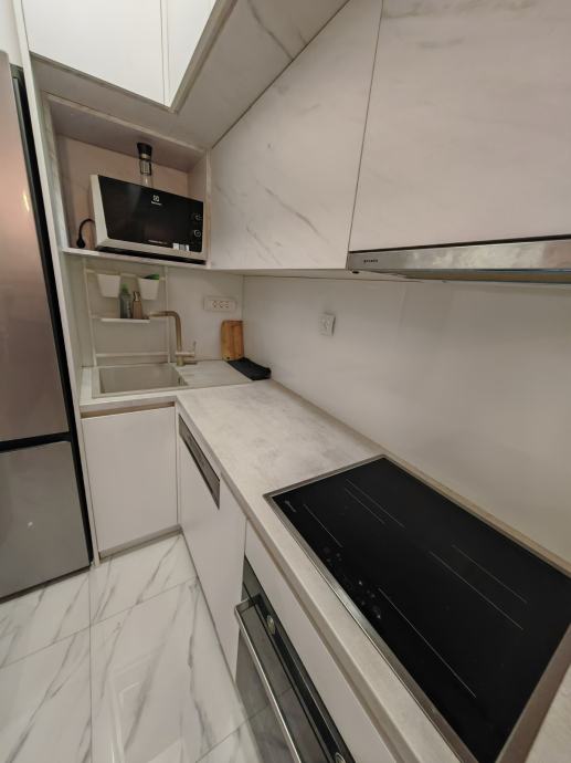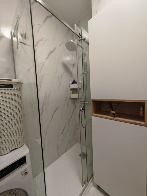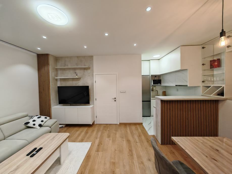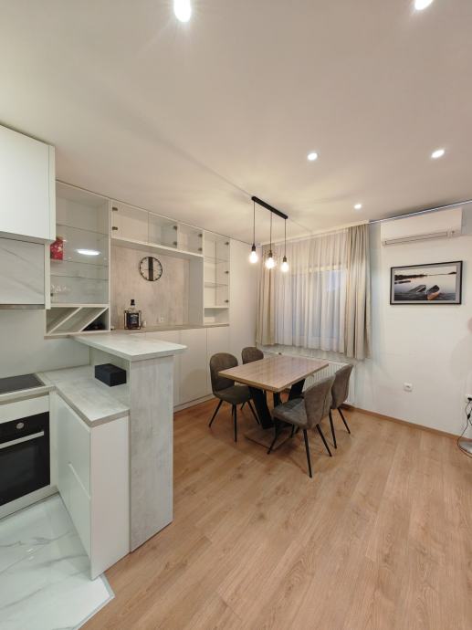 Vlasnik je stan renovirao za svoj život u njemu tako da je stan kreiran kao "pametni stan". Upravljanje rasvjetom, roletama i pojedinim uređajima moguć udaljenim pristupom putem mobitela. Stan također ima i kamere (koje se mogu odspojiti ukoliko najmoprimac ne želi). Najmoprimac dobiva pristup svemu tome. Nadalje, gotovo kompletan namještaj je rađen po mjeri Eggerovim pločastim materijalima tako da u 50 m2 najmoprimac dobiva izuzetno puno prostora za robu i stvari. Kupaonica ima podno grijanje koje se regulira putem termostata (može se omogućiti i preko mobitela).