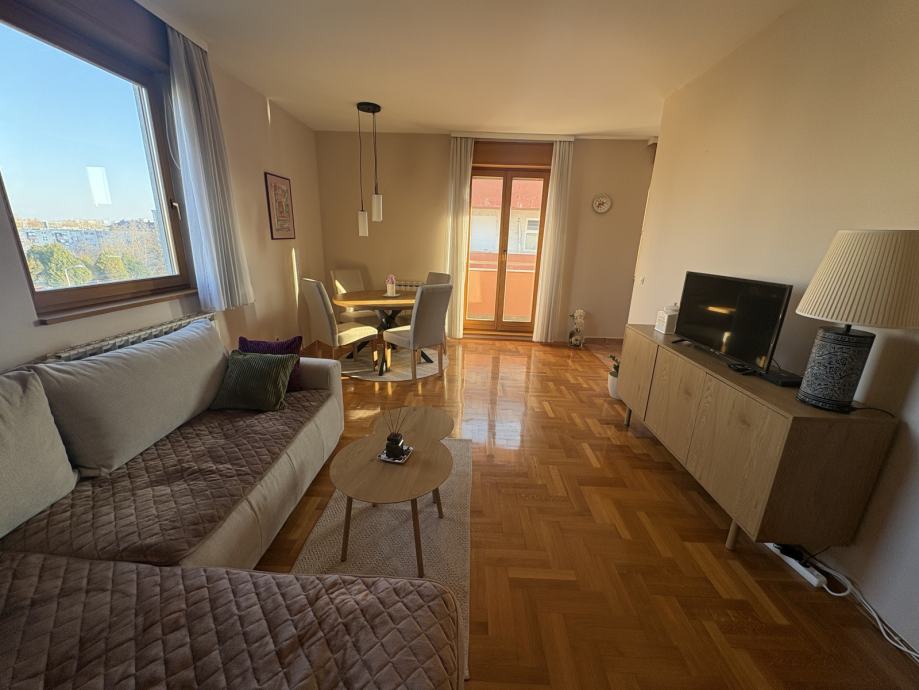 1 spavaća soba, ostava, kupaona s kadom, dnevni boravak i kuhinja. Stan se iznajmljuje namješten i na duži period. Režije nisu uključene u cijenu najma i iznose cca. 120 eur mjesecno (s ukljucenim A1 paketom)