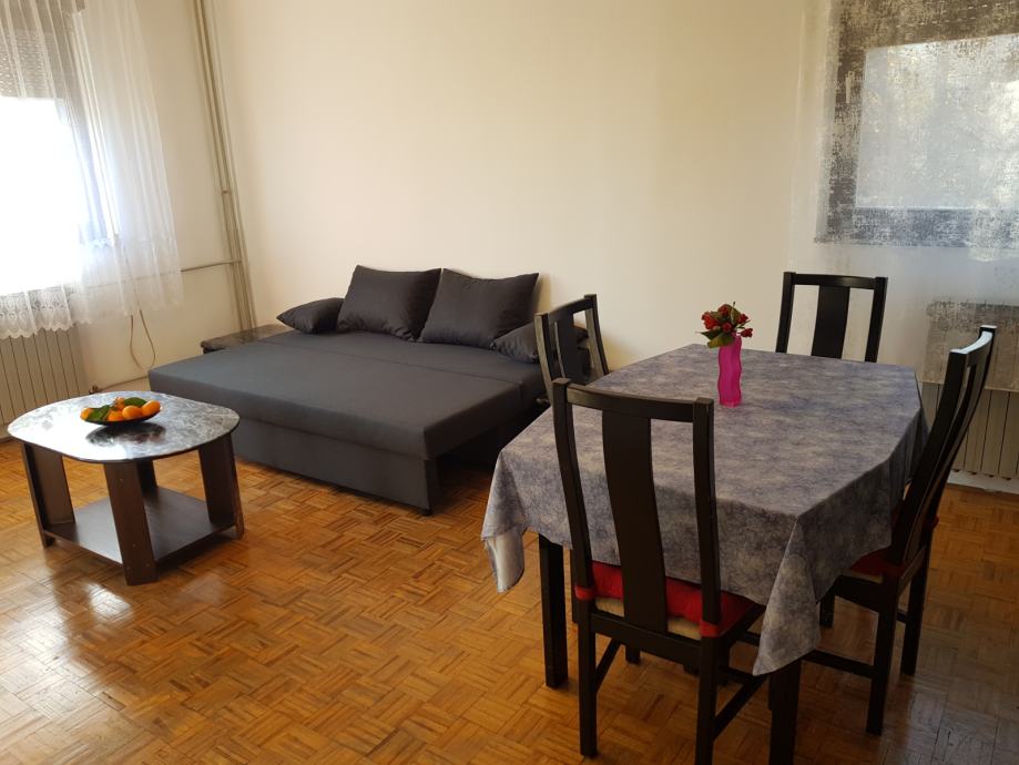 Iznajmljuje se jednosobni potpuno opremljen i udoban stan na Jarunu površine 42 m2 na prvom katu stambene zgrade na mirnoj lokaciji u blizini tramvaja, busa, tržnice i jezera Jarun. Stan se sastoji od hodnika, prostrane sobe, natkrivene lođe sa balkonom, kuhinje i kupaonice sa WC, a sadrži centralno grijanje od toplane, kabelsku TV, brzi optički internet, WiFi, namještaj, hladnjak, zamrzivač, štednjak, mikrovalnu pećnicu, perilicu posuđa, perilicu rublja, televizor i suđe na raspolaganju. Prilikom najma plaća se prva mjesečna najamnina te polog u istom iznosu, a režije se plaćaju po dospijeću.