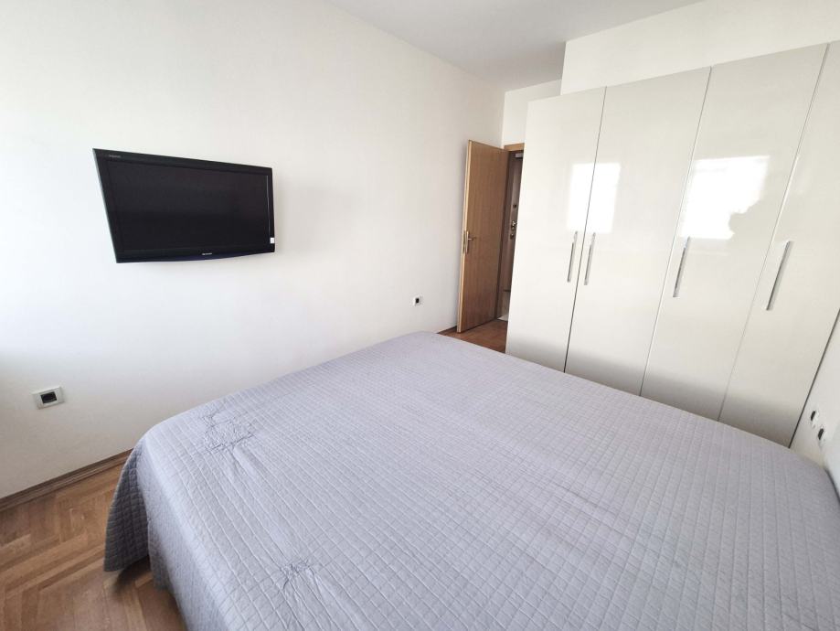 Stan se sastoji od klimatiziranog dnevnog boravka sa blagovaonom te izlaskom na lođu, kuhinjom sa perilicom posuđa, spavačom sobom sa televizorom i velikim ormarom te kupatilom sa WC-om. U stan je kupljena nova vešmašina koja će se instalirati za dan dva.