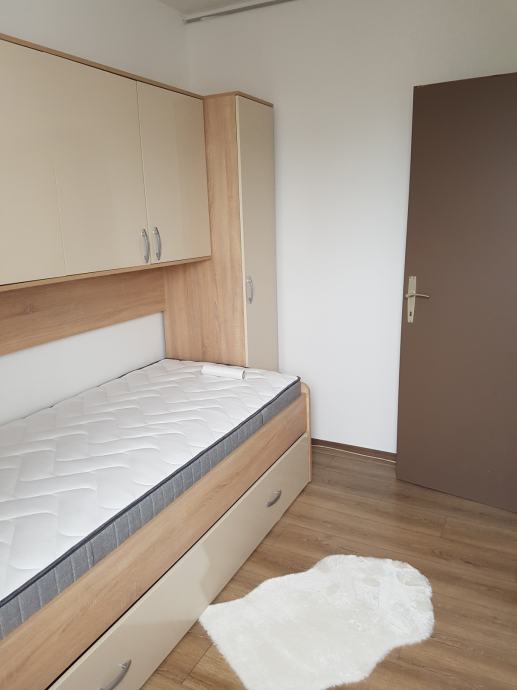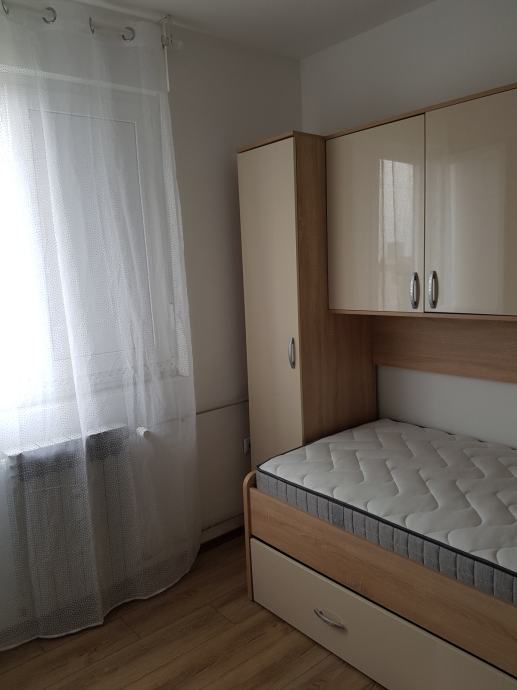Stan se sastoji od tri sobe od čega su 2 spavaće i jedan dnevni boravak, kuhinje s ostavom, kupaonice, wc-a, predsoblja, hodnika i loggie te pripadajućim spremištem u podrumu zgrade.