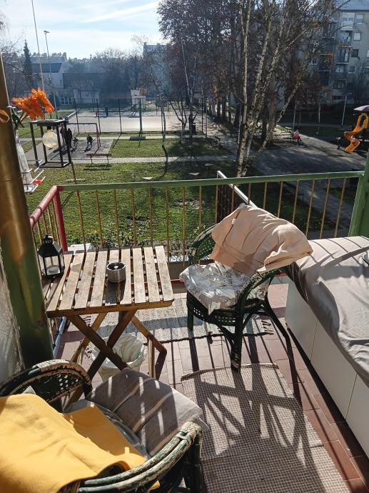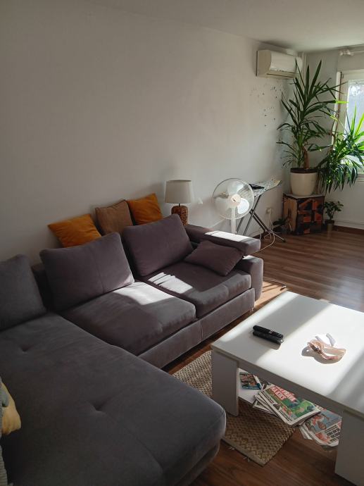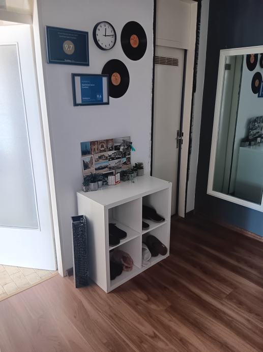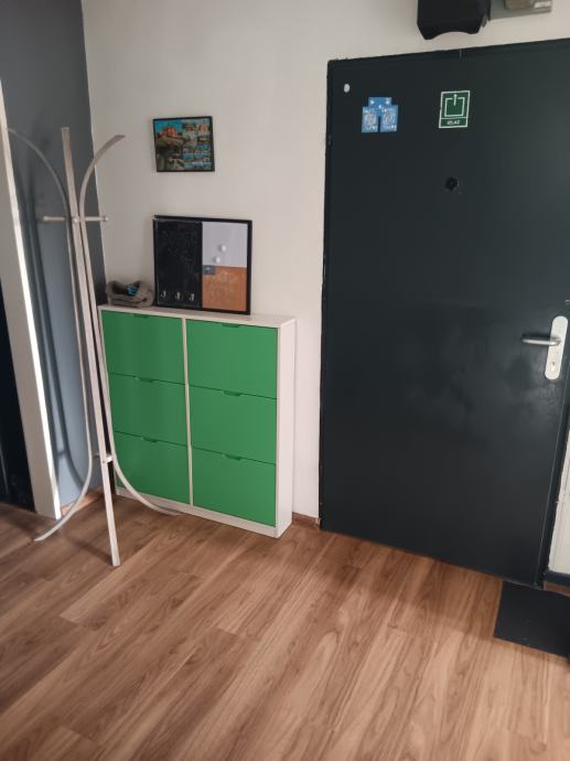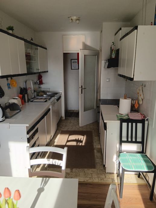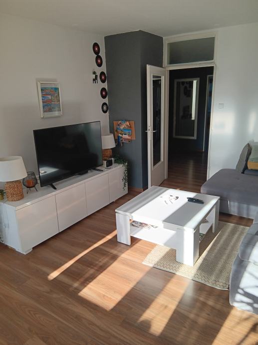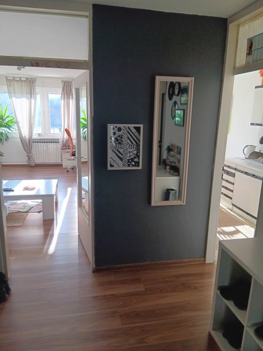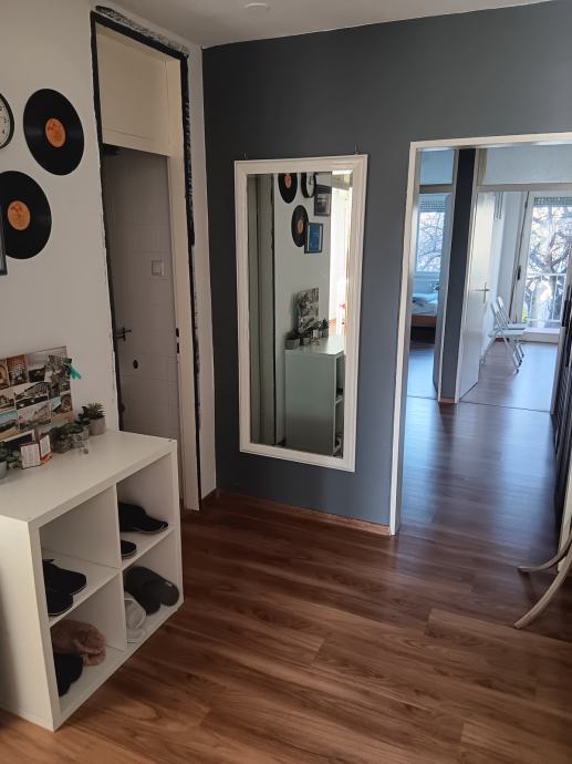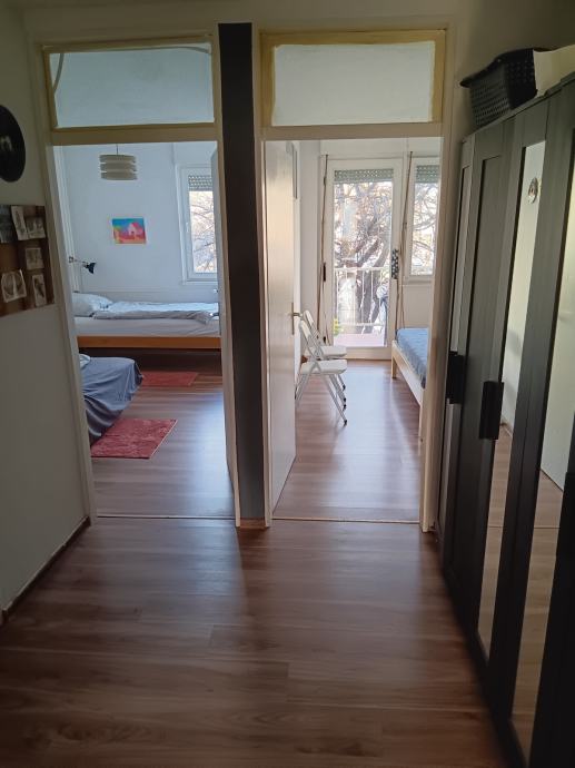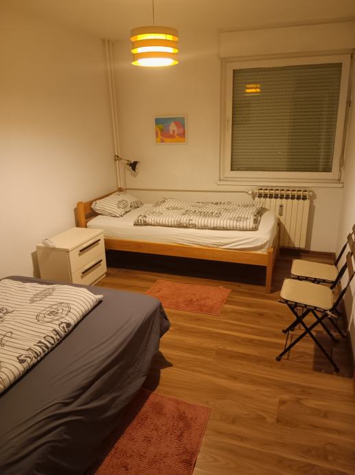Iznajmljuje se 3sobni stan na prvom katu stambene zgrade, orijentacija sjever-jug. Sastoji se od velike dnevne sobe na južnoj strani sa obiljem svjetla, kuhinje i blagovaonice sa balkonom. Na sjevernoj strani su dvije spavaće sobe - jedna sa velikim bračnim krevetom i ormarom te balkonom, a druga soba sa malim bračnim krevetom i single krevetom. Kupaonica ima kadu i vešmašinu a osim nje stan sadrži i dodatni mali wc.
