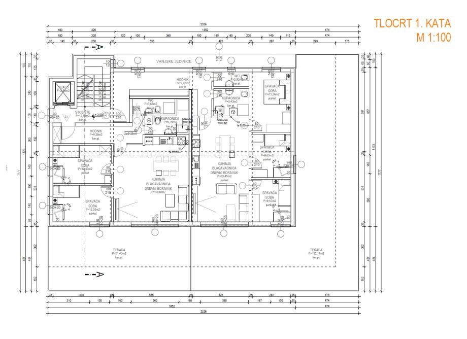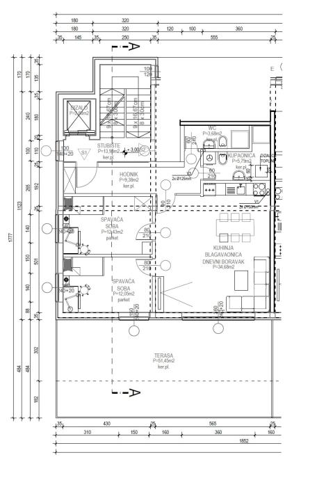 - dn. boravak, blagovaonica i kuhinja 34,68 m2